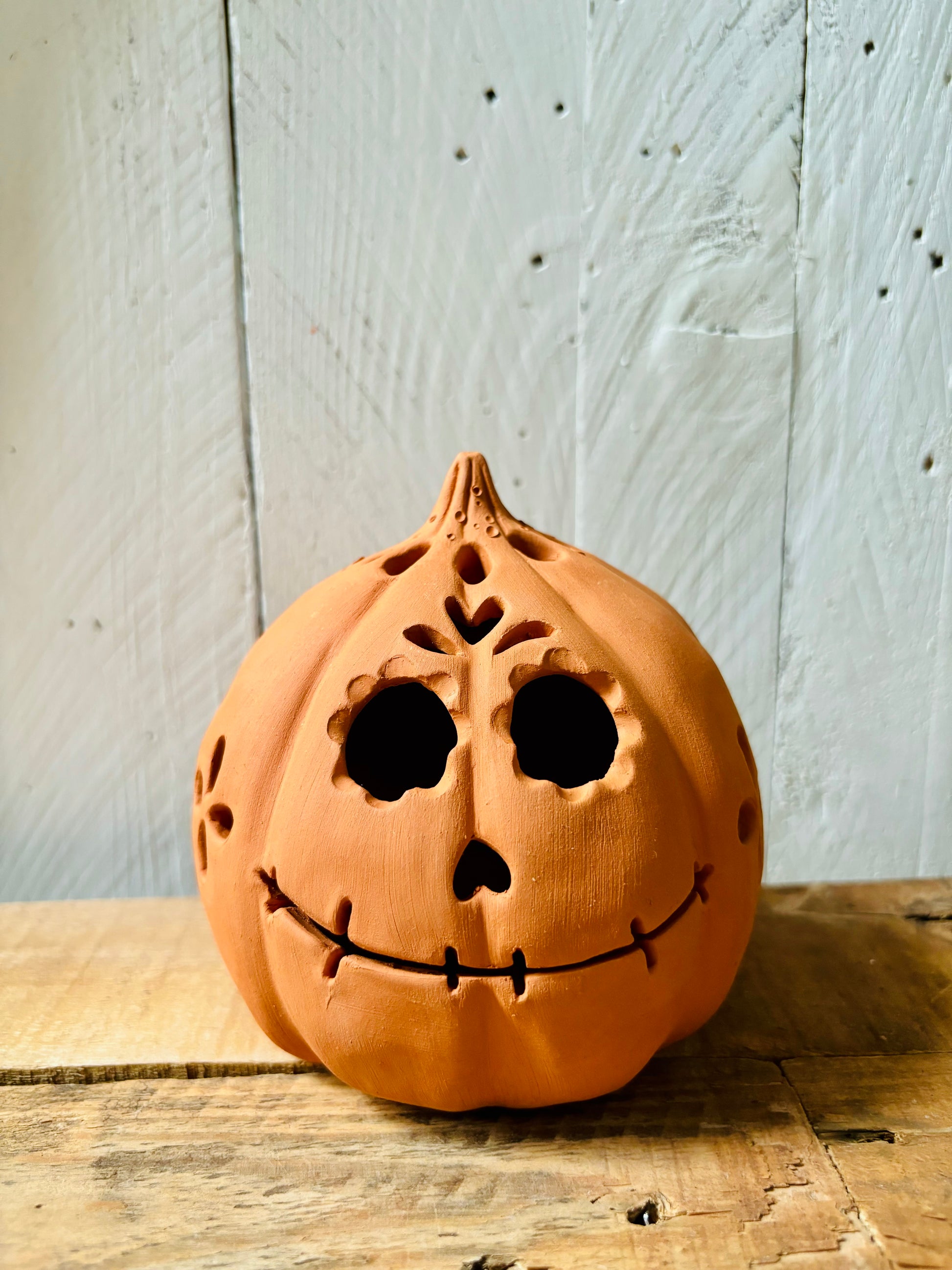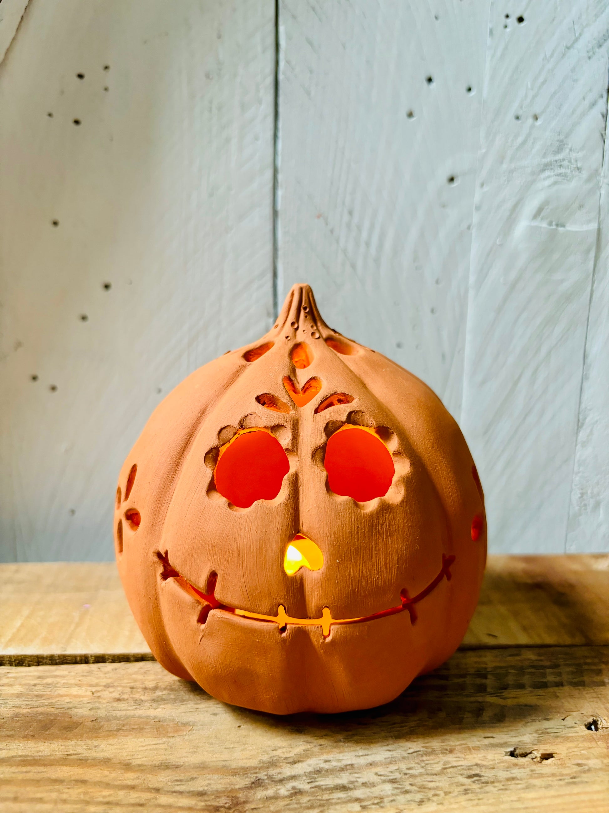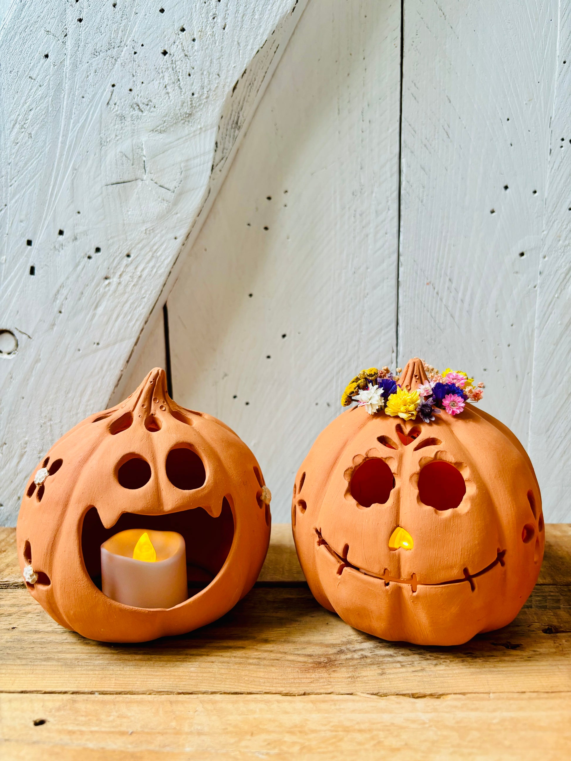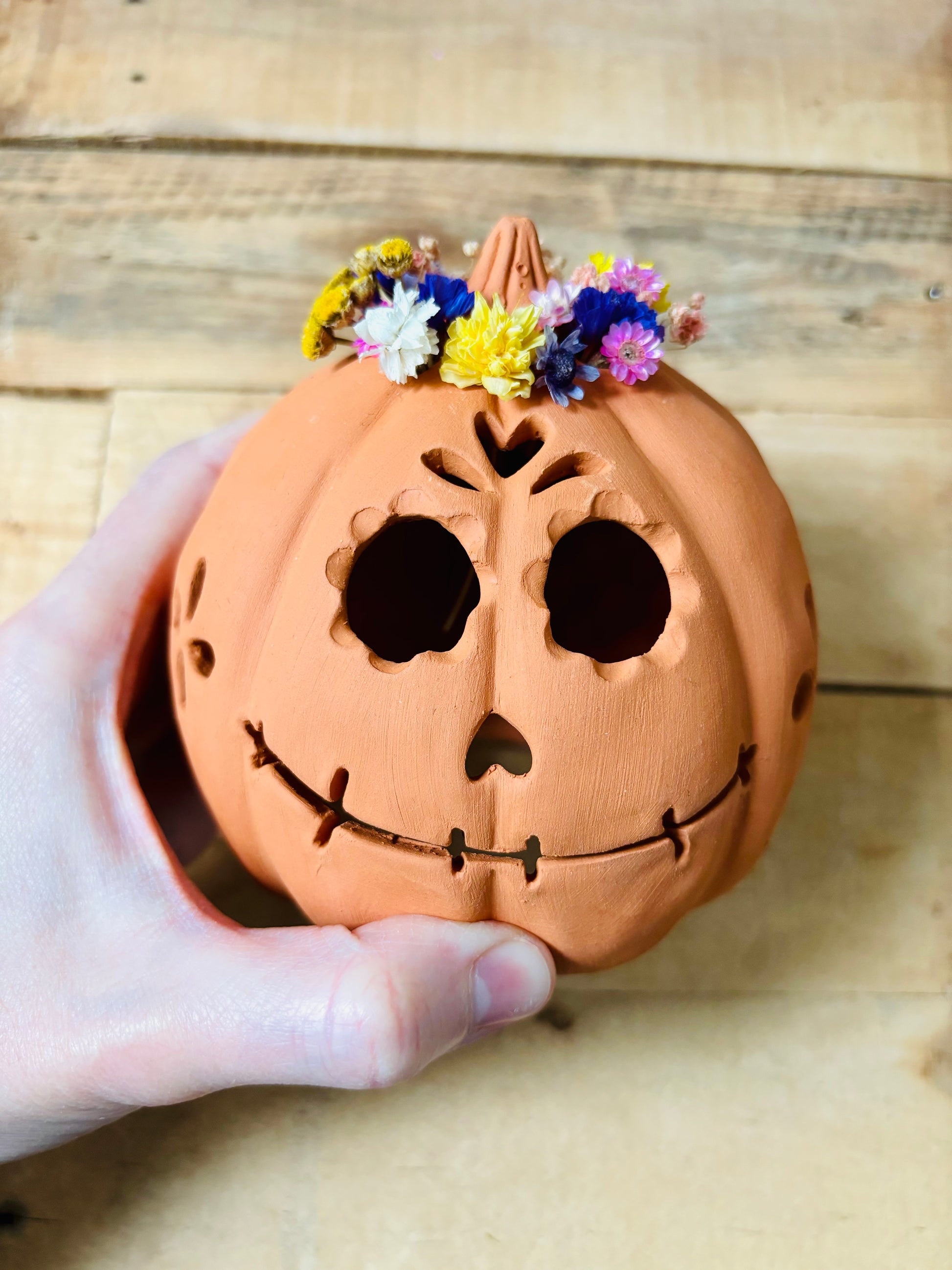 Citrouille photophore en céramique à décorer d'une jolie couronne de fleurs (fleurs non fournies).