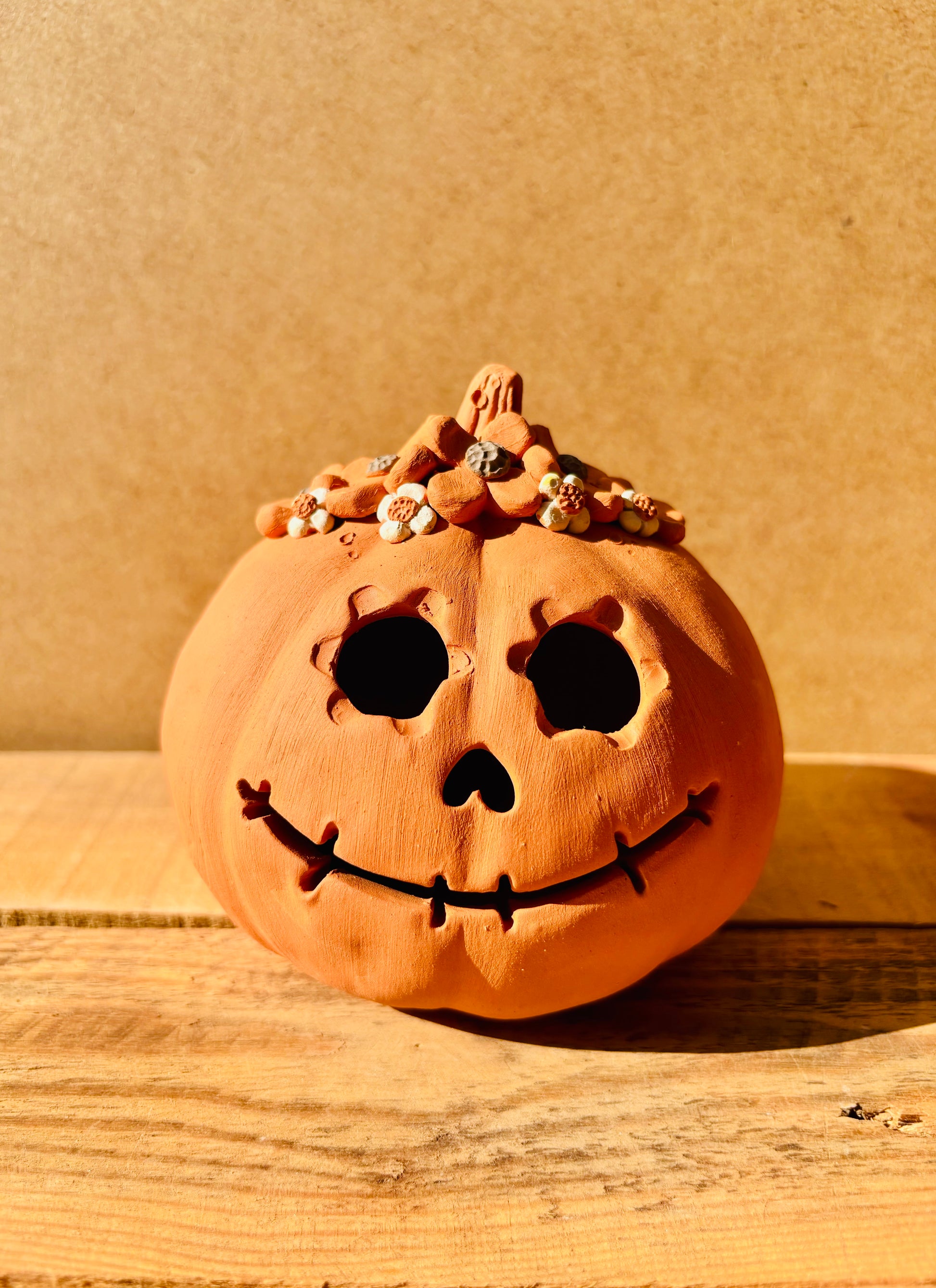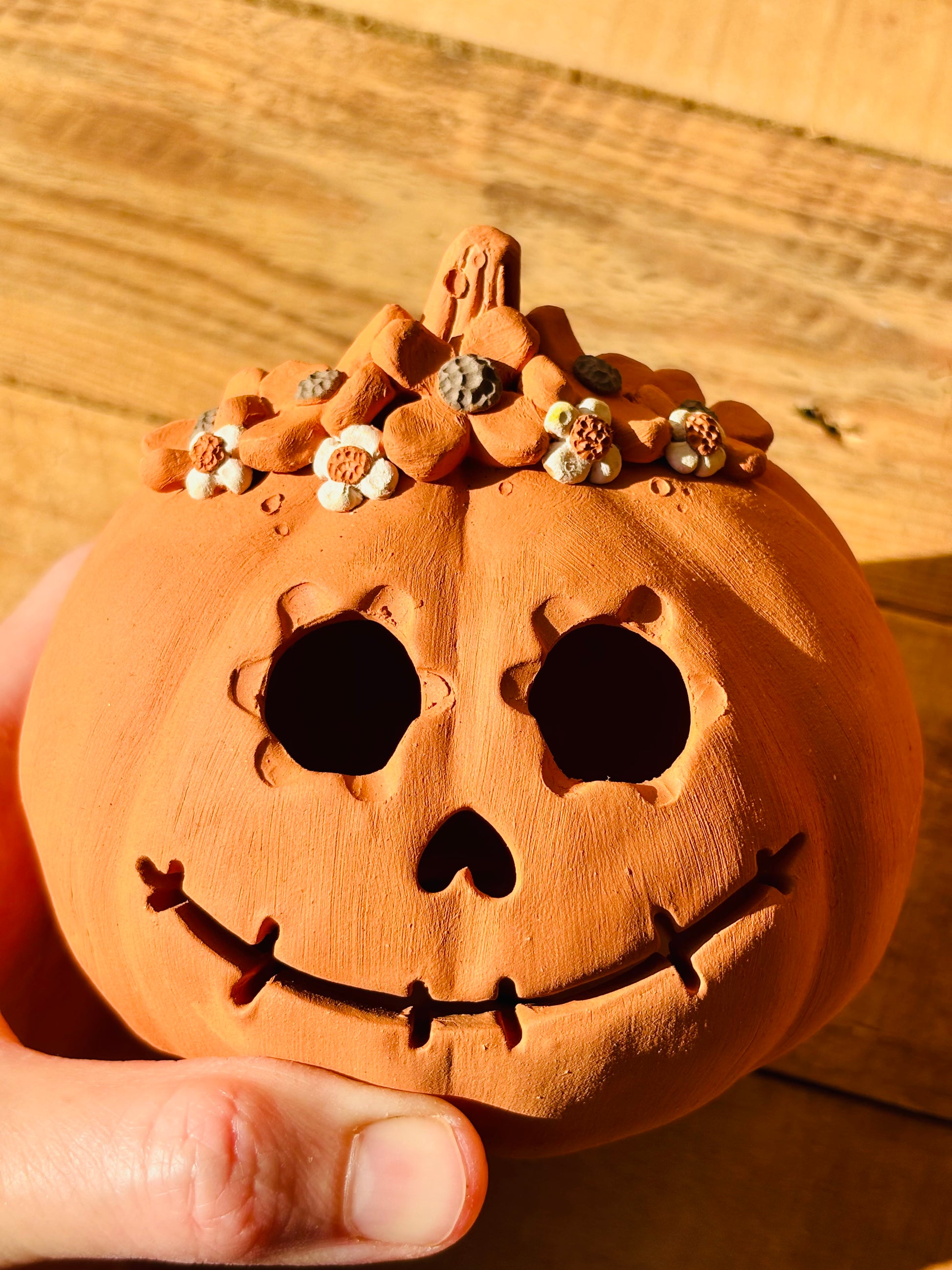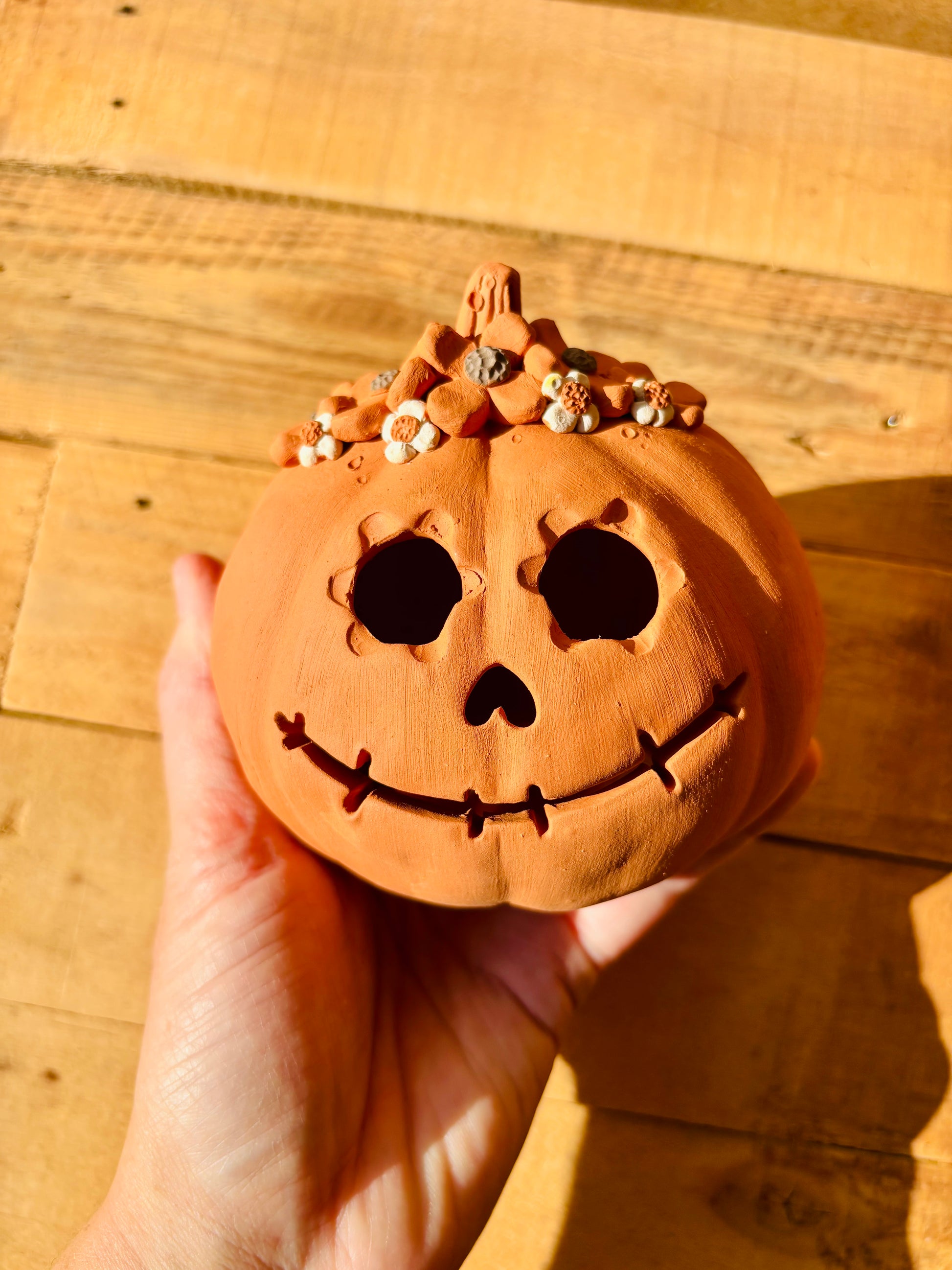 Citrouille photophore en céramique à décorer d'une jolie couronne de fleurs (fleurs non fournies).