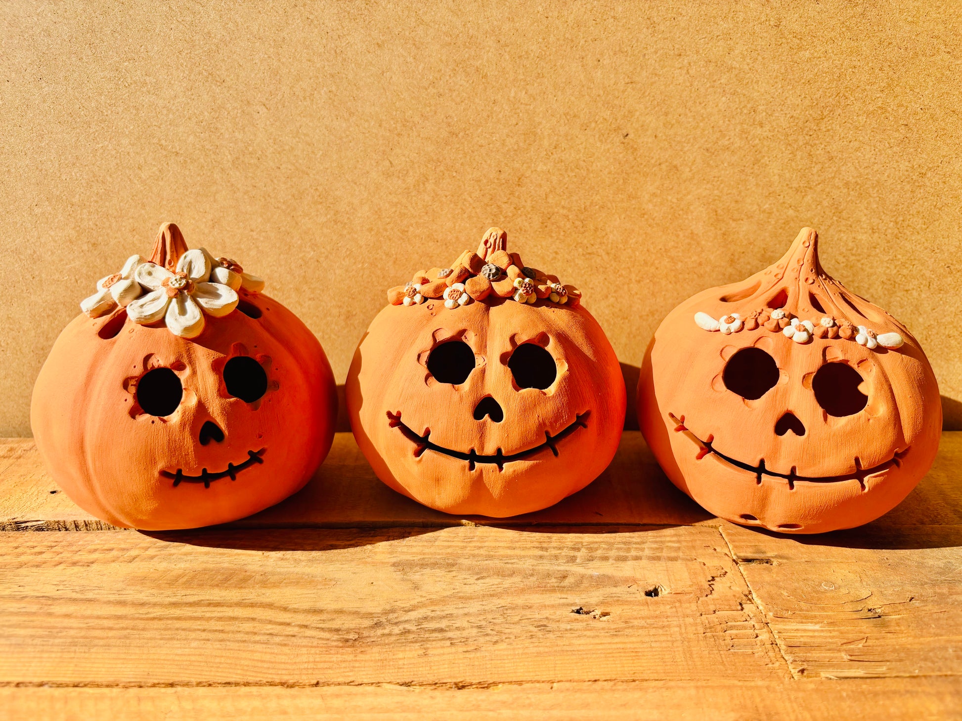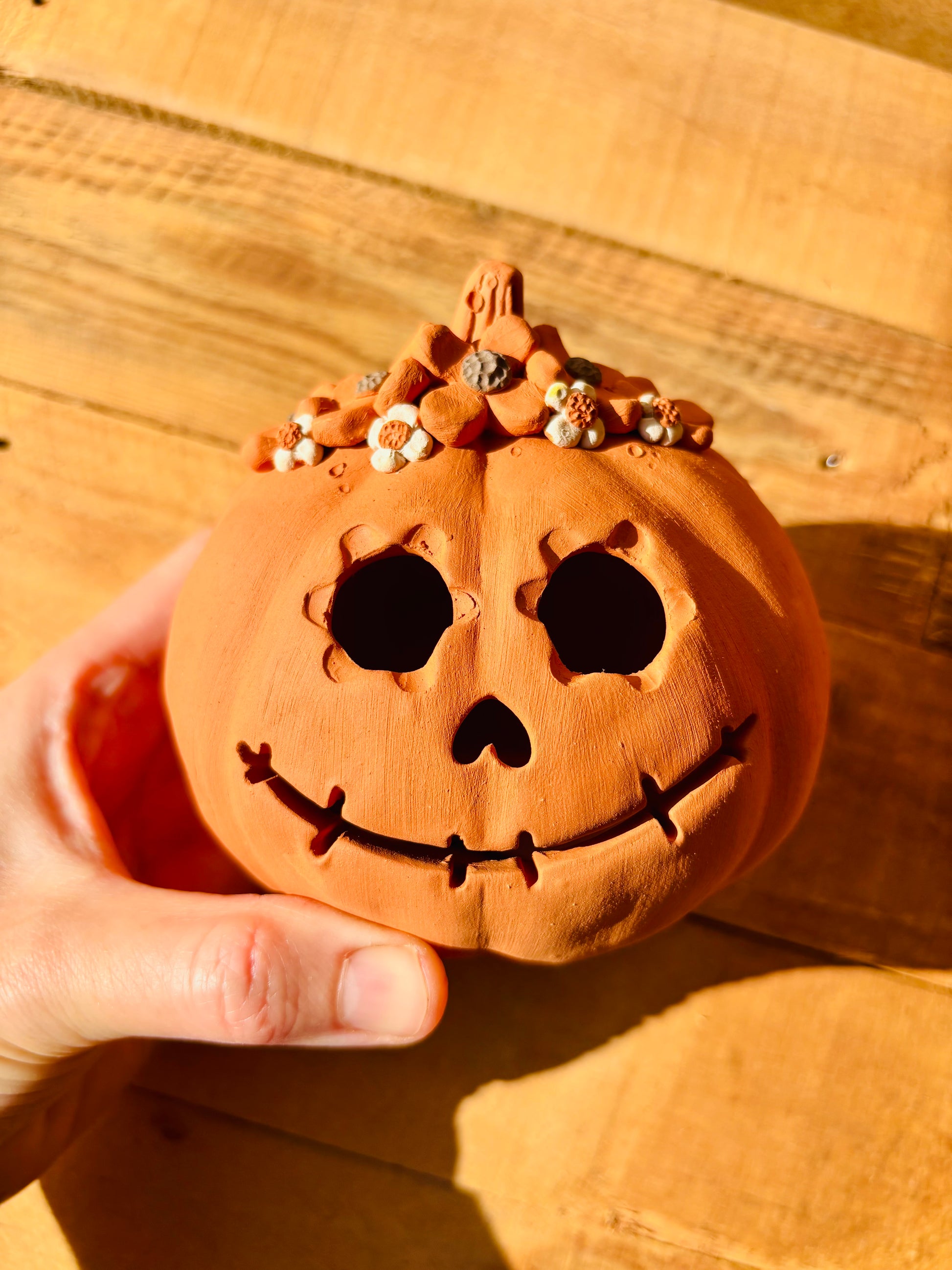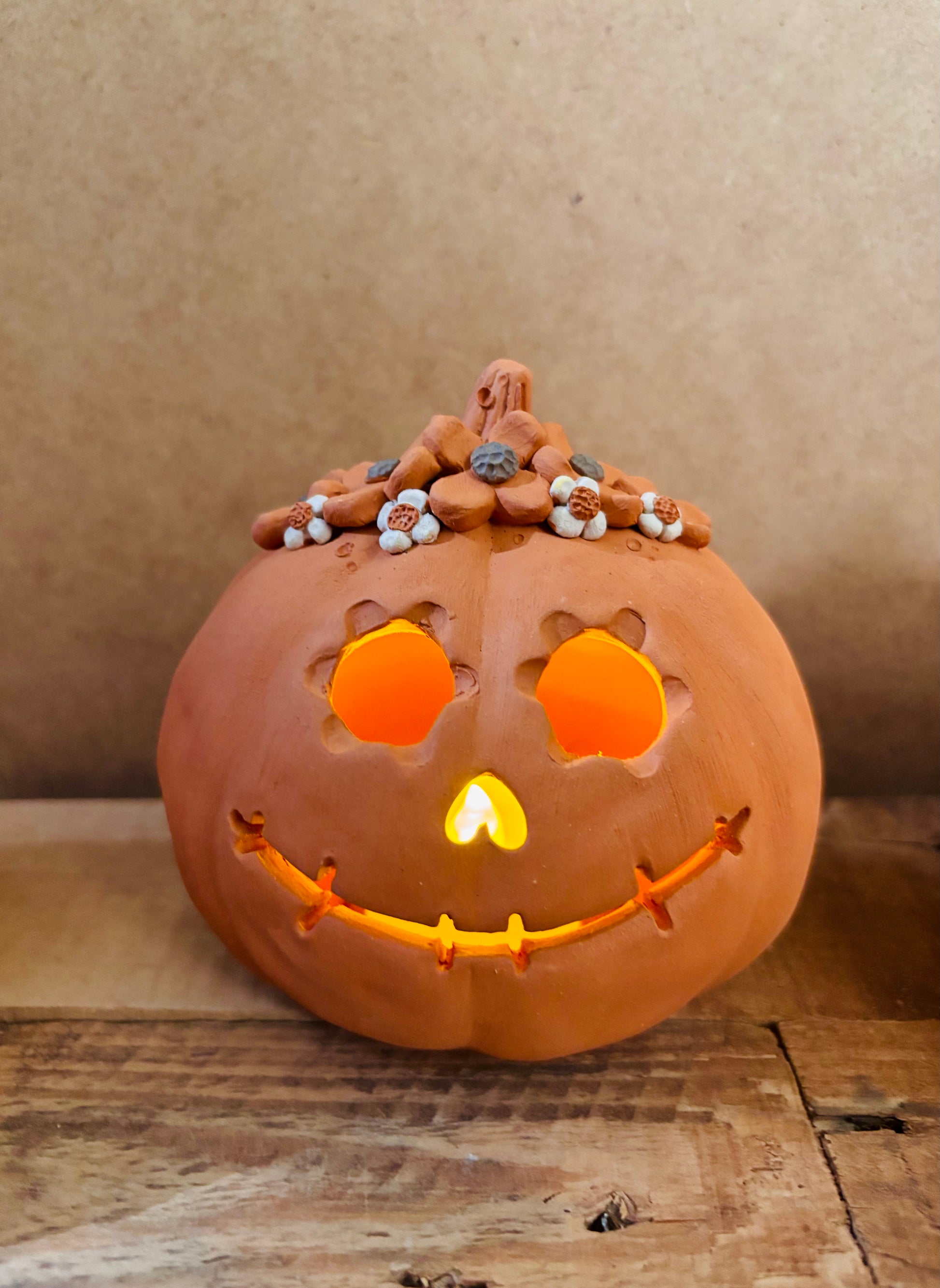 Citrouille photophore en céramique à décorer d'une jolie couronne de fleurs (fleurs non fournies).