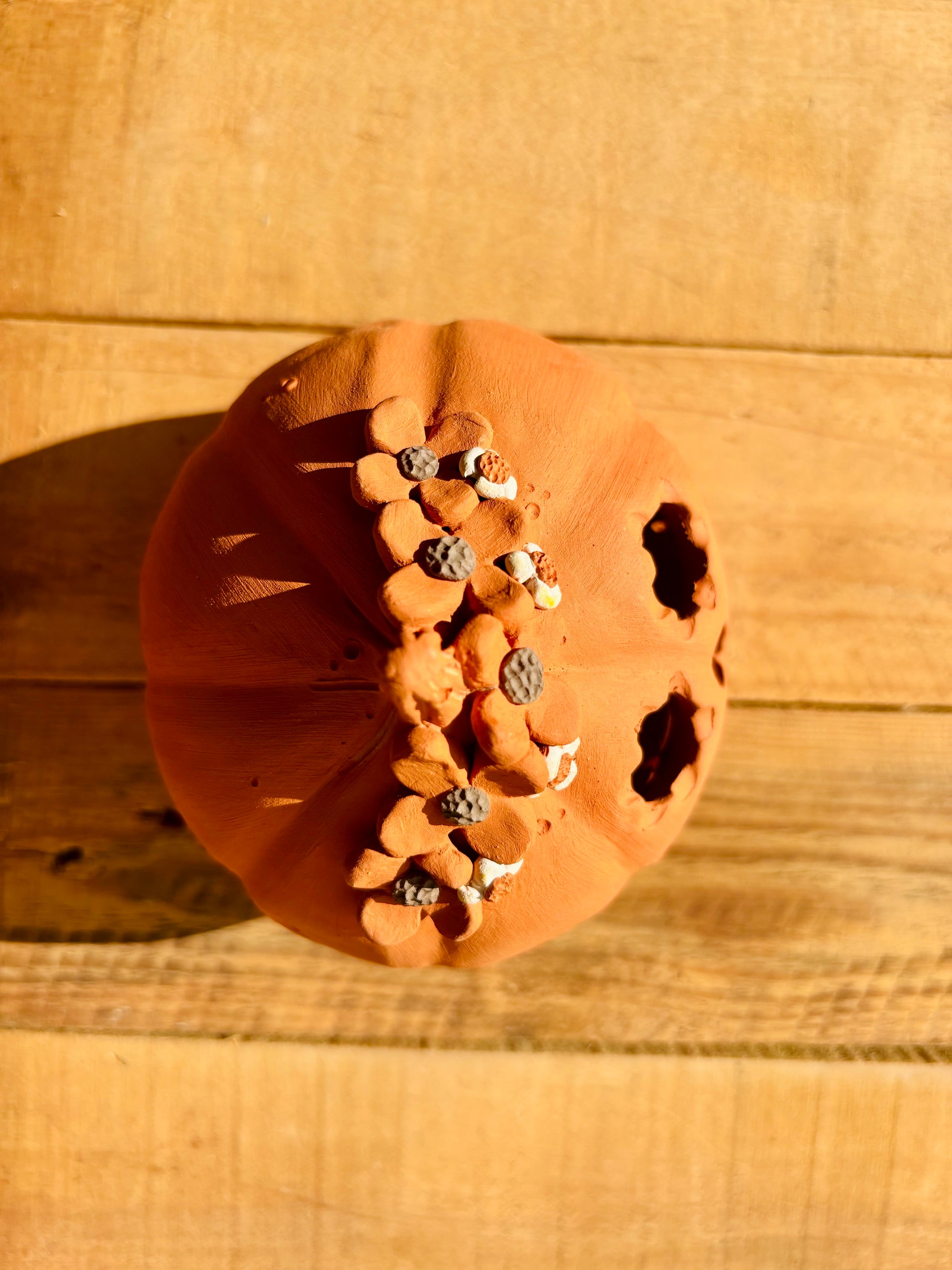 Karine - Etsy - 10/31/22 - I had the chance to adopt the "claude" pumpkin, it is magnificent. My son is super happy. Very well packaged, a little note and ceramic label, superb attention, Thank you!!!. Looking forward to expanding the family with Hector's order.