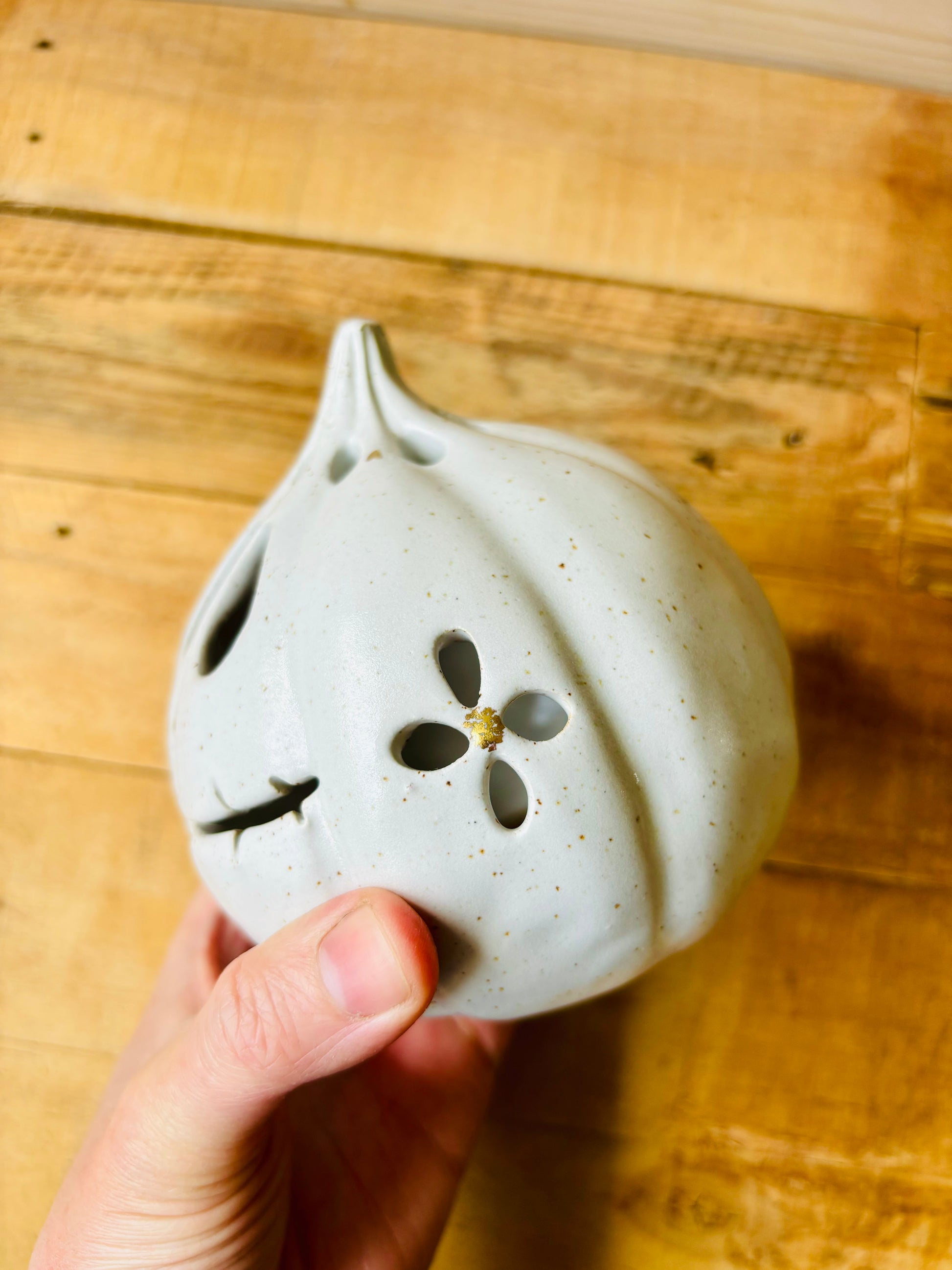 Karine - Etsy - 10/31/22 - I had the chance to adopt the "claude" pumpkin, it is magnificent. My son is super happy. Very well packaged, a little note and ceramic label, superb attention, Thank you!!!. Looking forward to expanding the family with Hector's order.