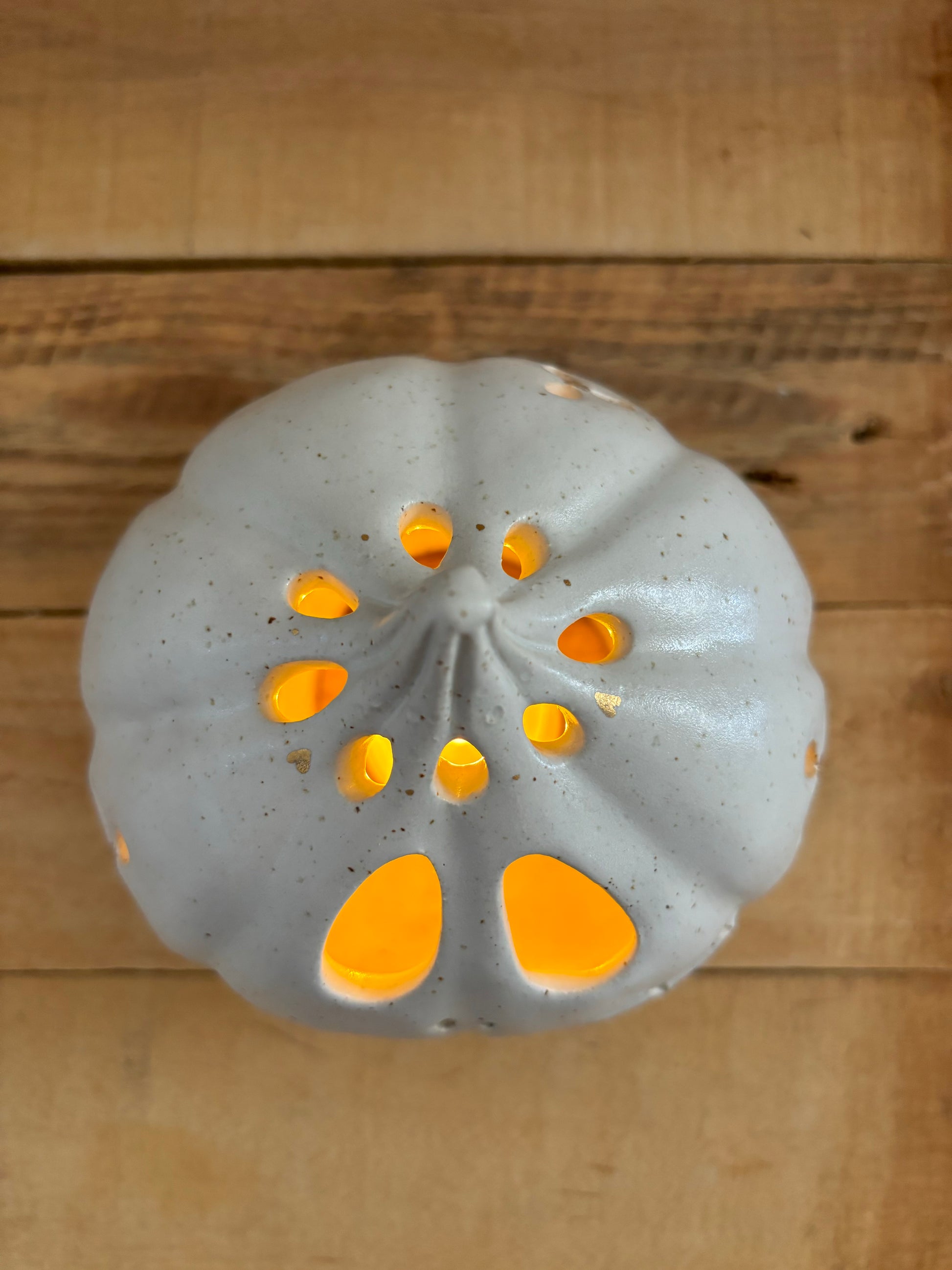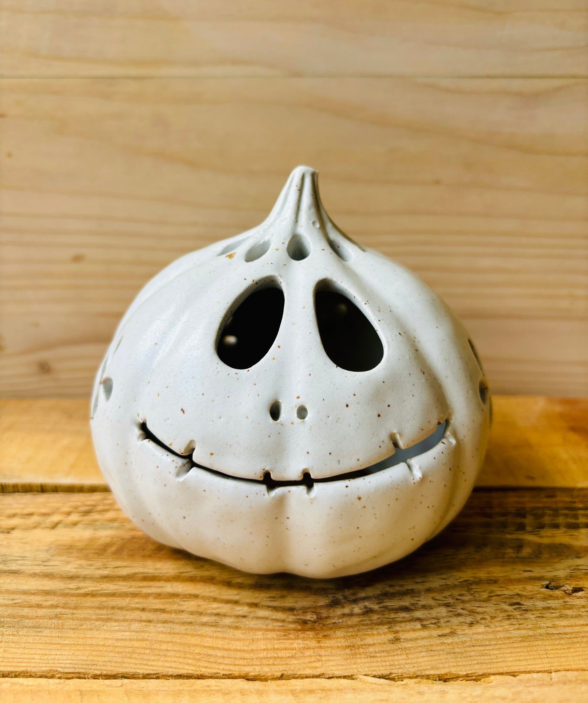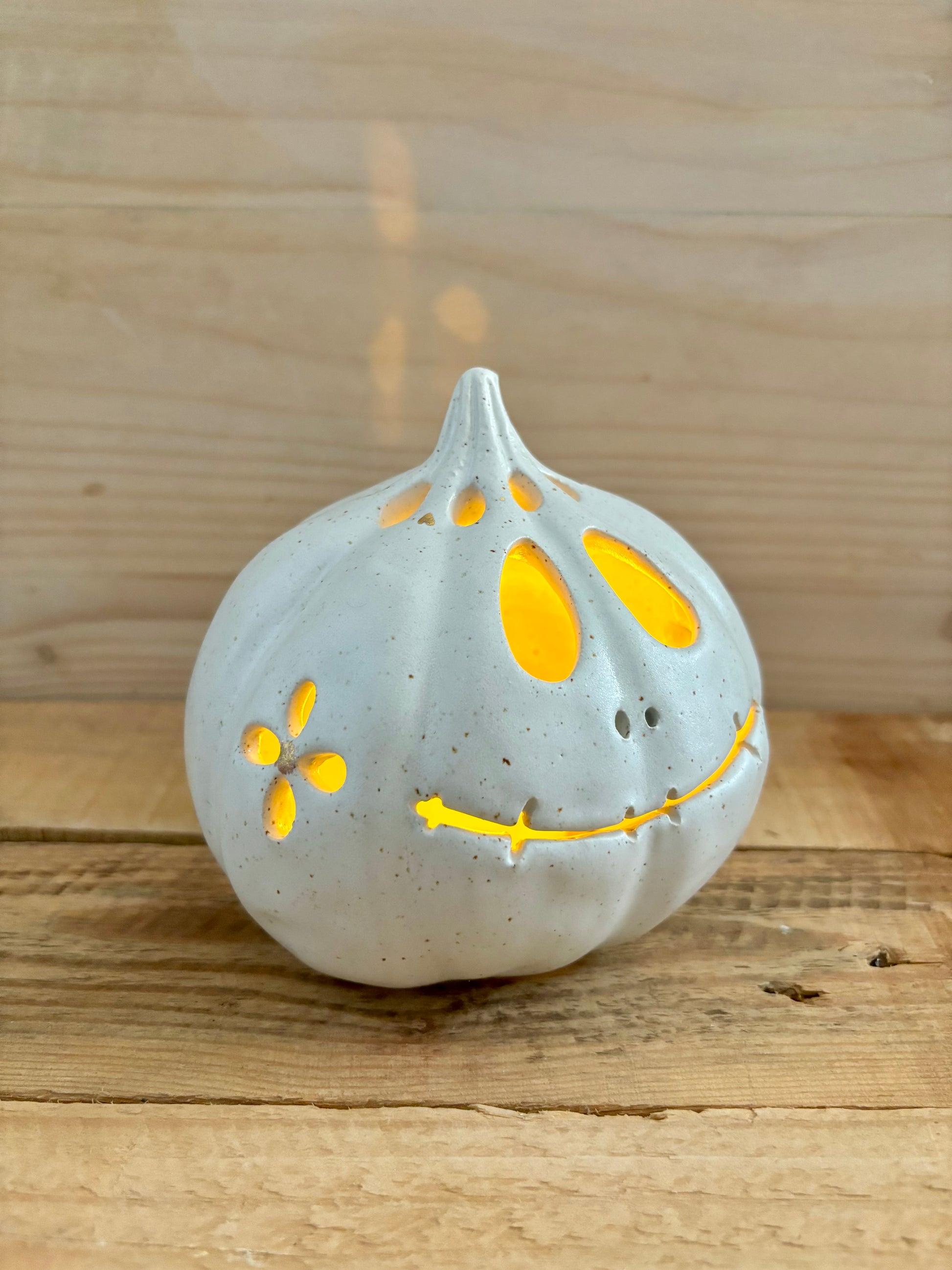 Citrouille photophore en céramique à décorer d'une jolie couronne de fleurs (fleurs non fournies).