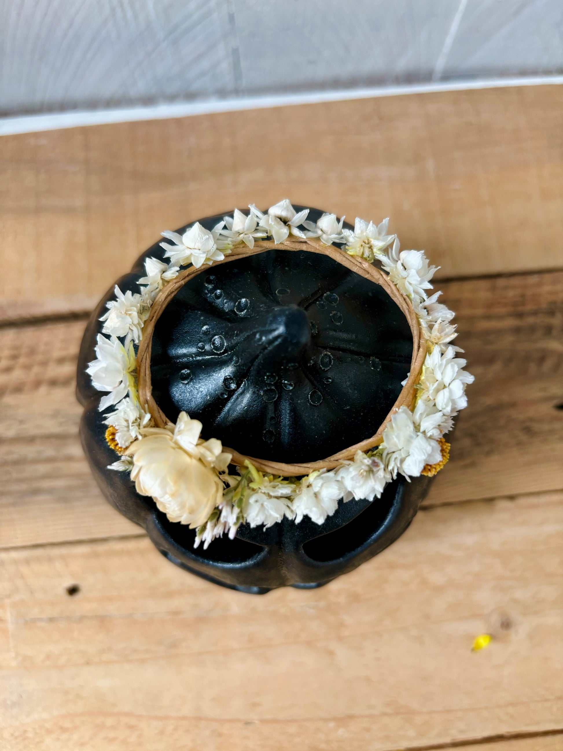 Large wreath of dried flowers to decorate your pumpkin tealight!