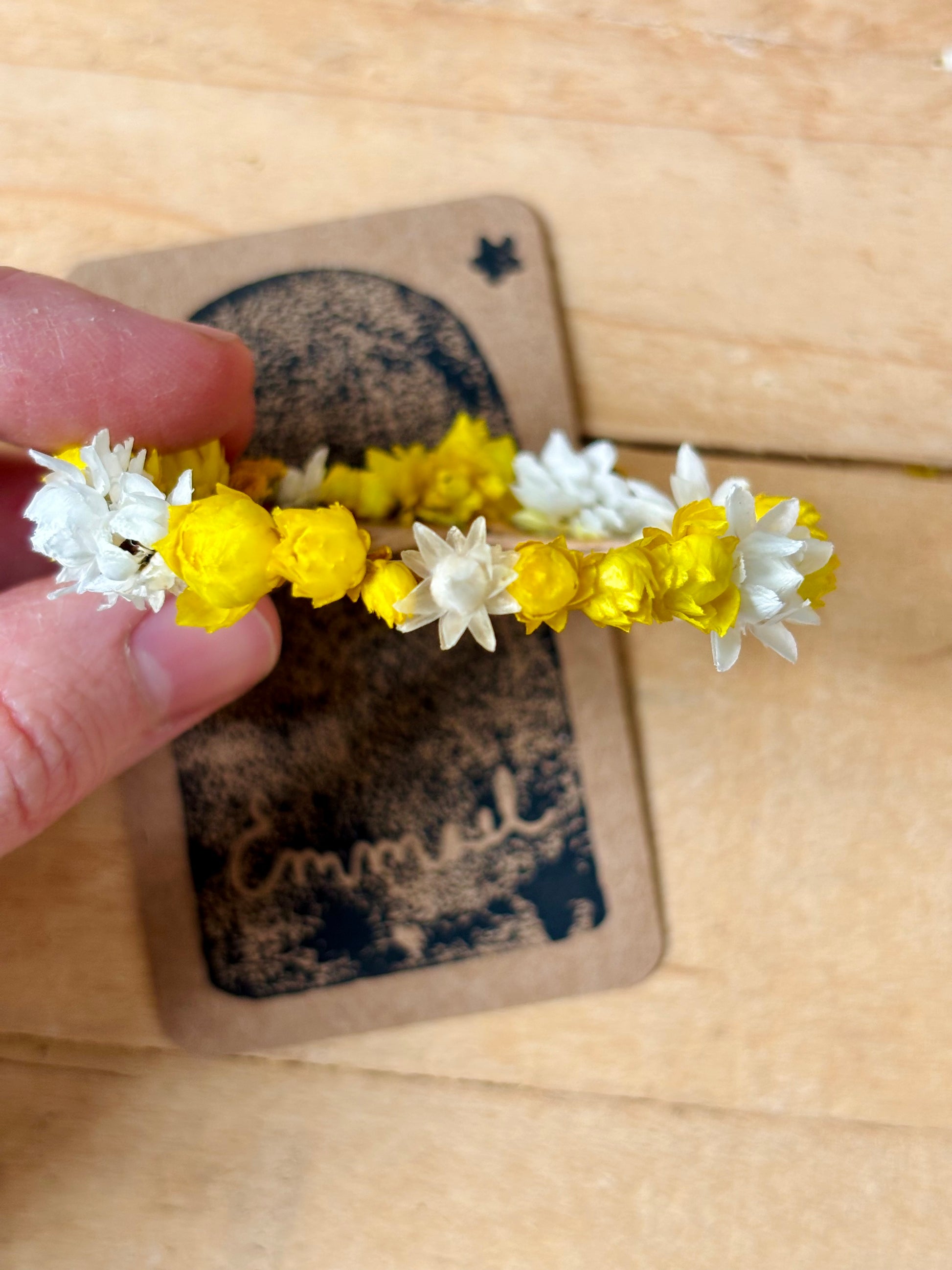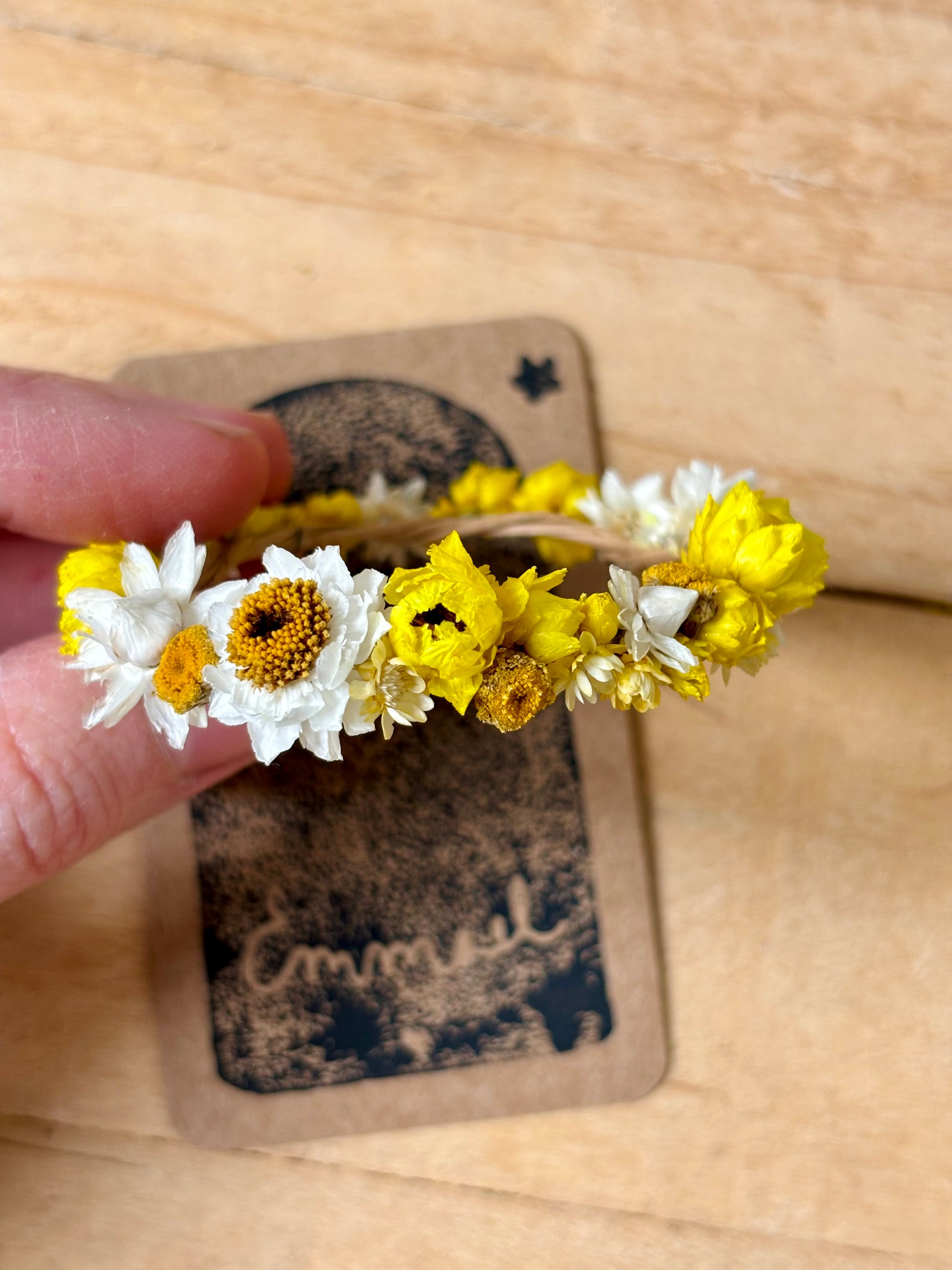Each flower is unique due to its variety, its size and the intensity of its color. This crown is composed and assembled by hand.