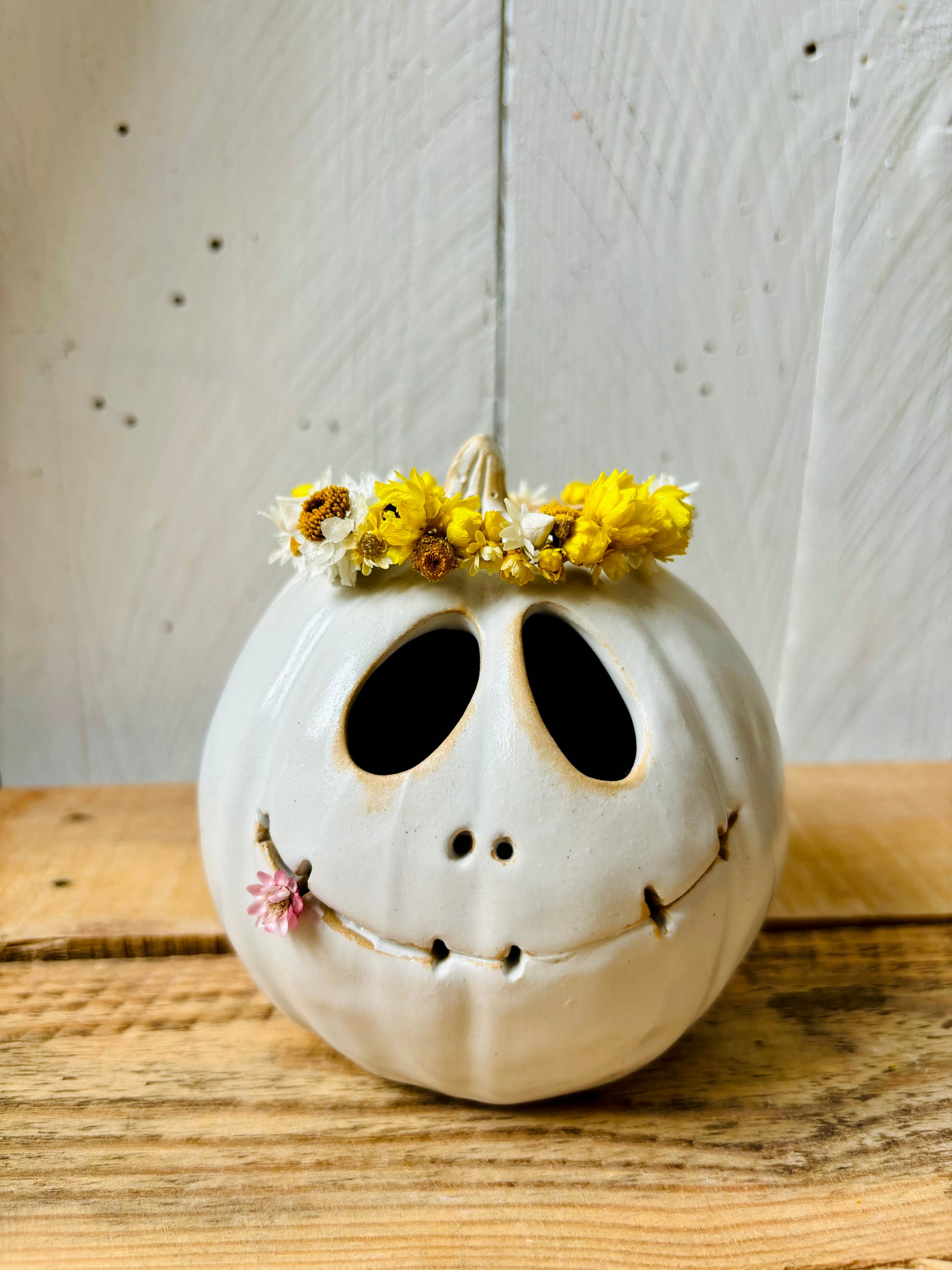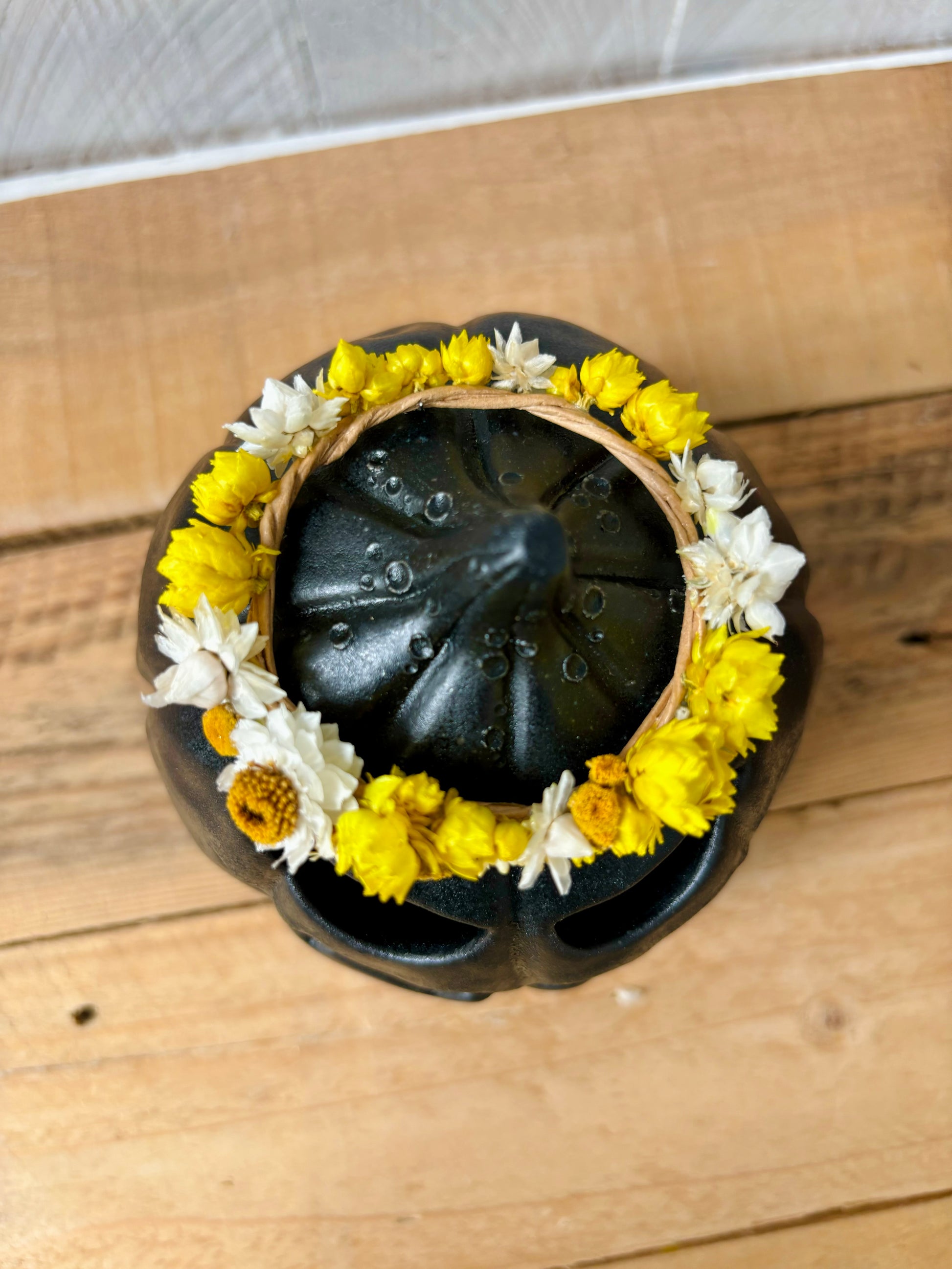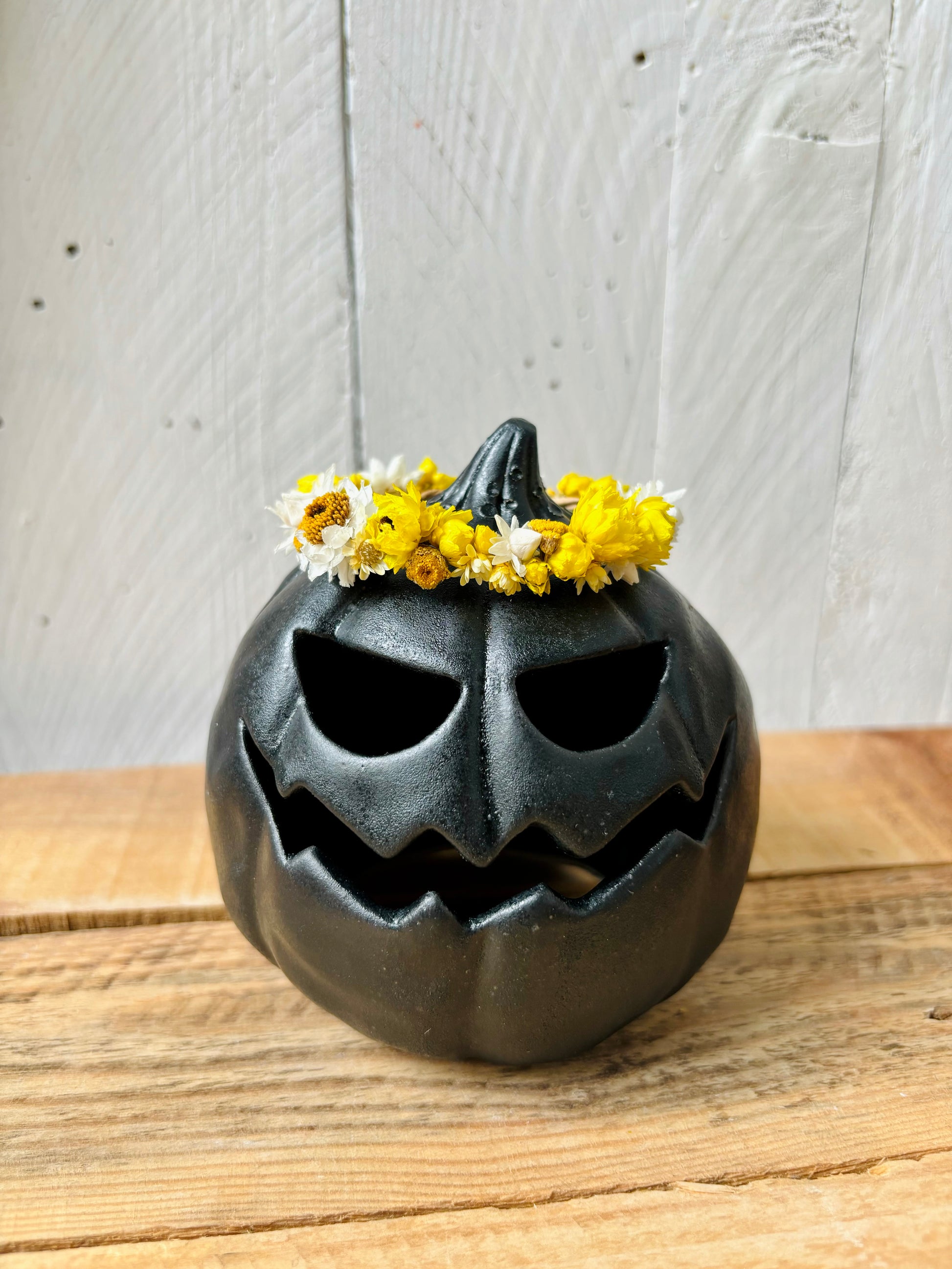 Large wreath of dried flowers to decorate your tealight pumpkin!