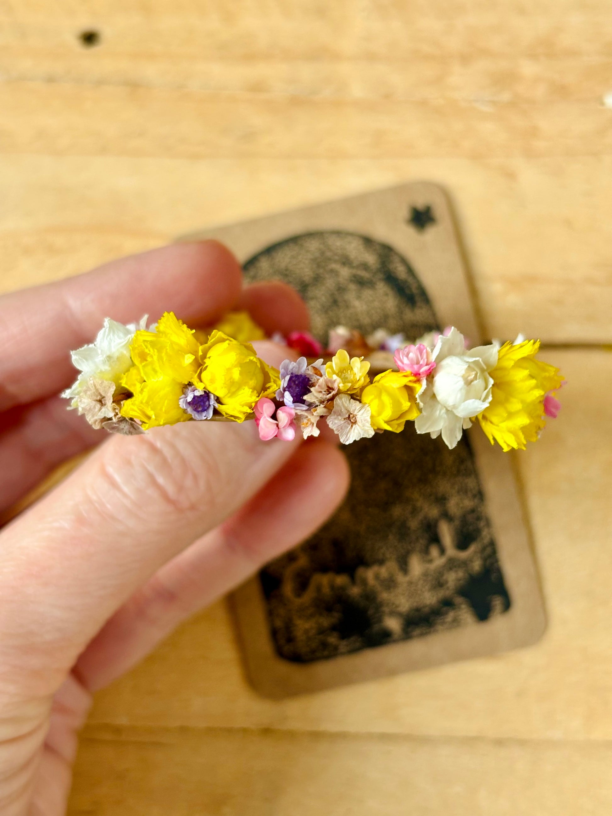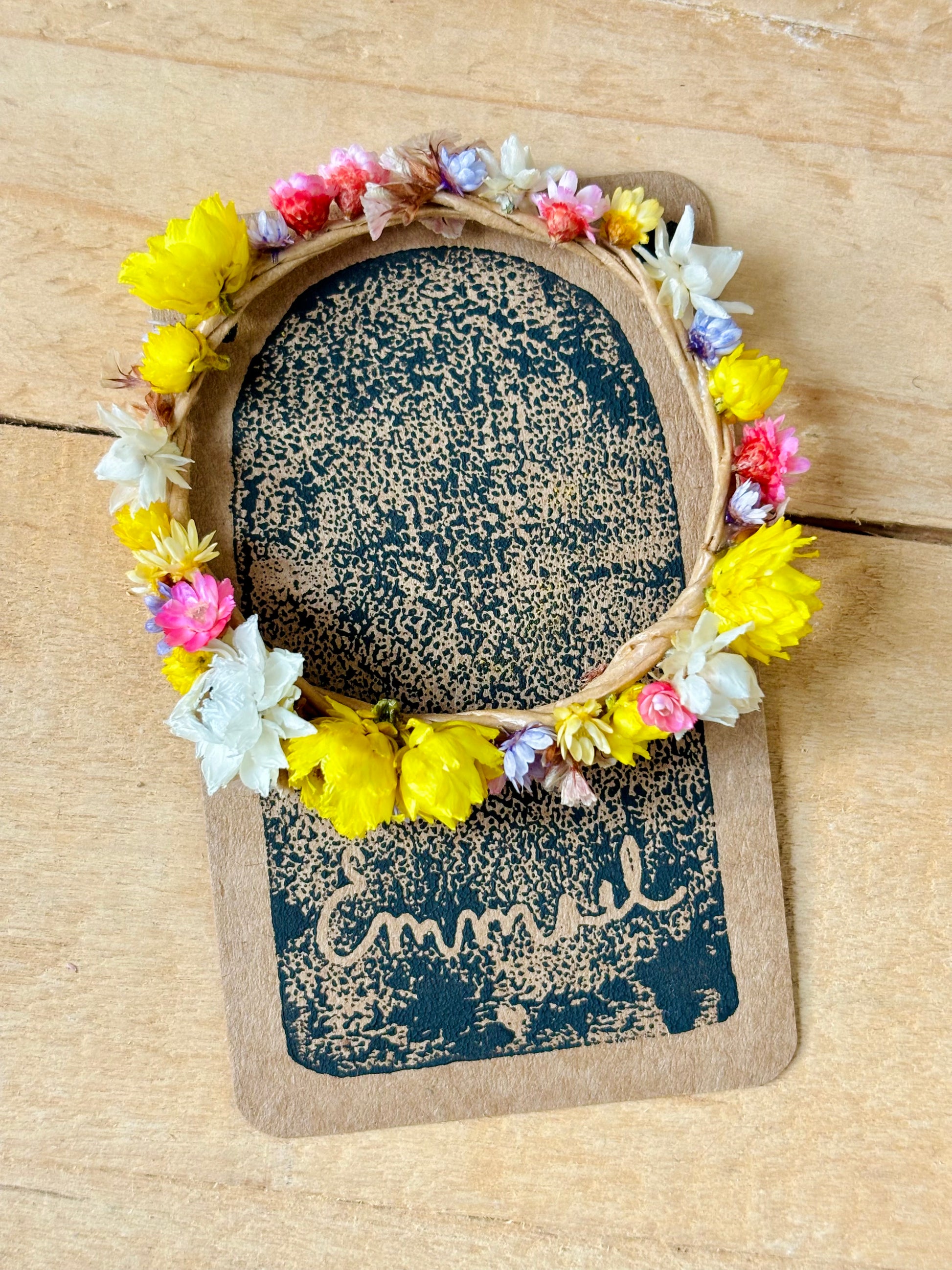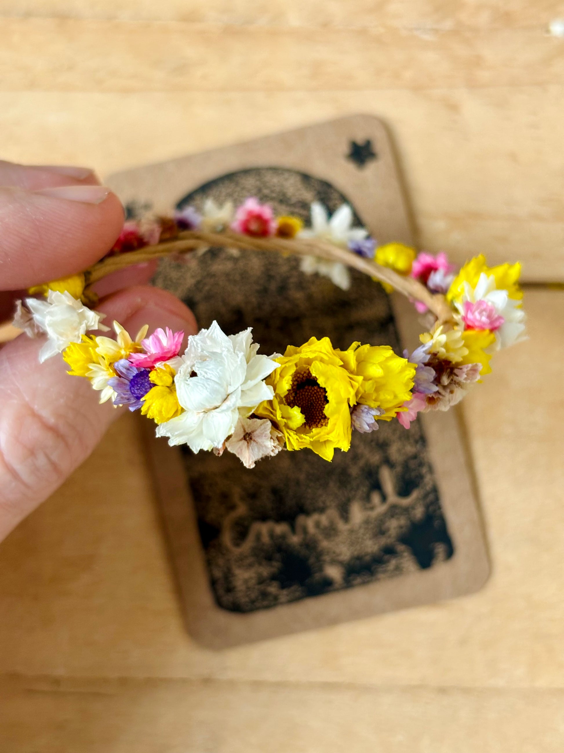 Each flower is unique due to its variety, its size and the intensity of its color. This crown is composed and assembled by hand.
