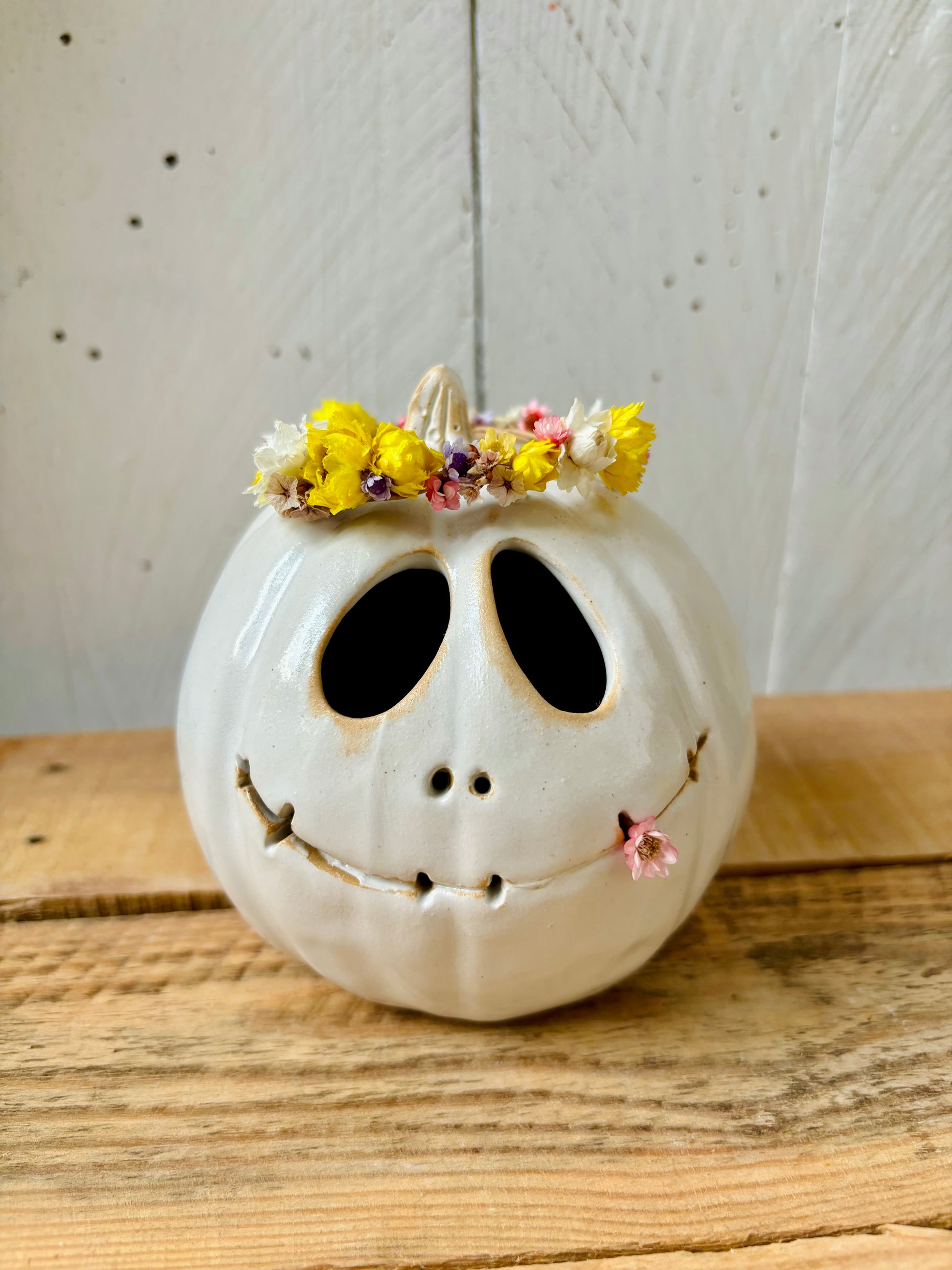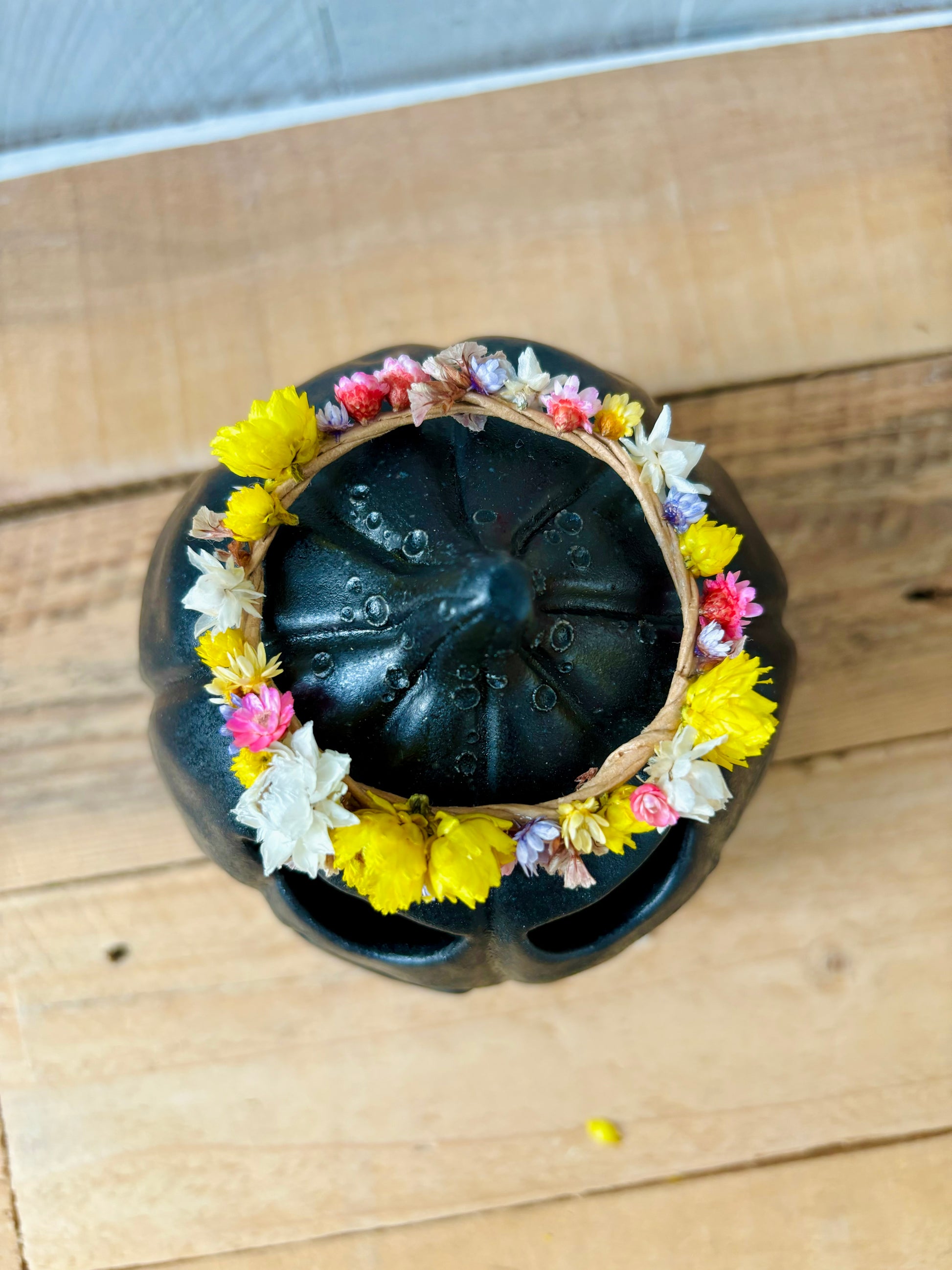 Large wreath of dried flowers to decorate your tealight pumpkin!
