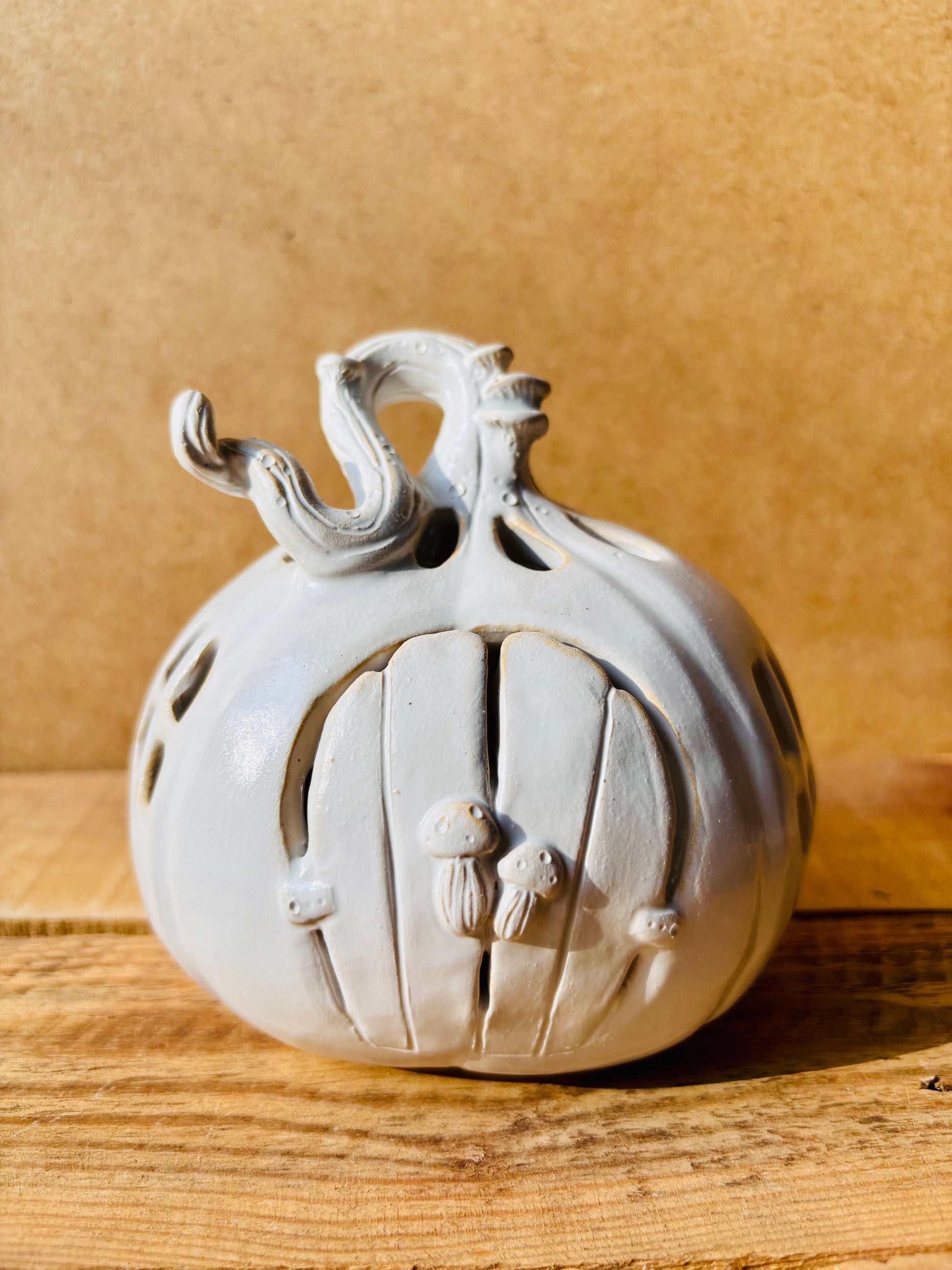 Karine - Etsy - 10/31/22 - I had the chance to adopt the "claude" pumpkin, it is magnificent. My son is super happy. Very well packaged, a little note and ceramic label, superb attention, Thank you!!!. Looking forward to expanding the family with Hector's order.