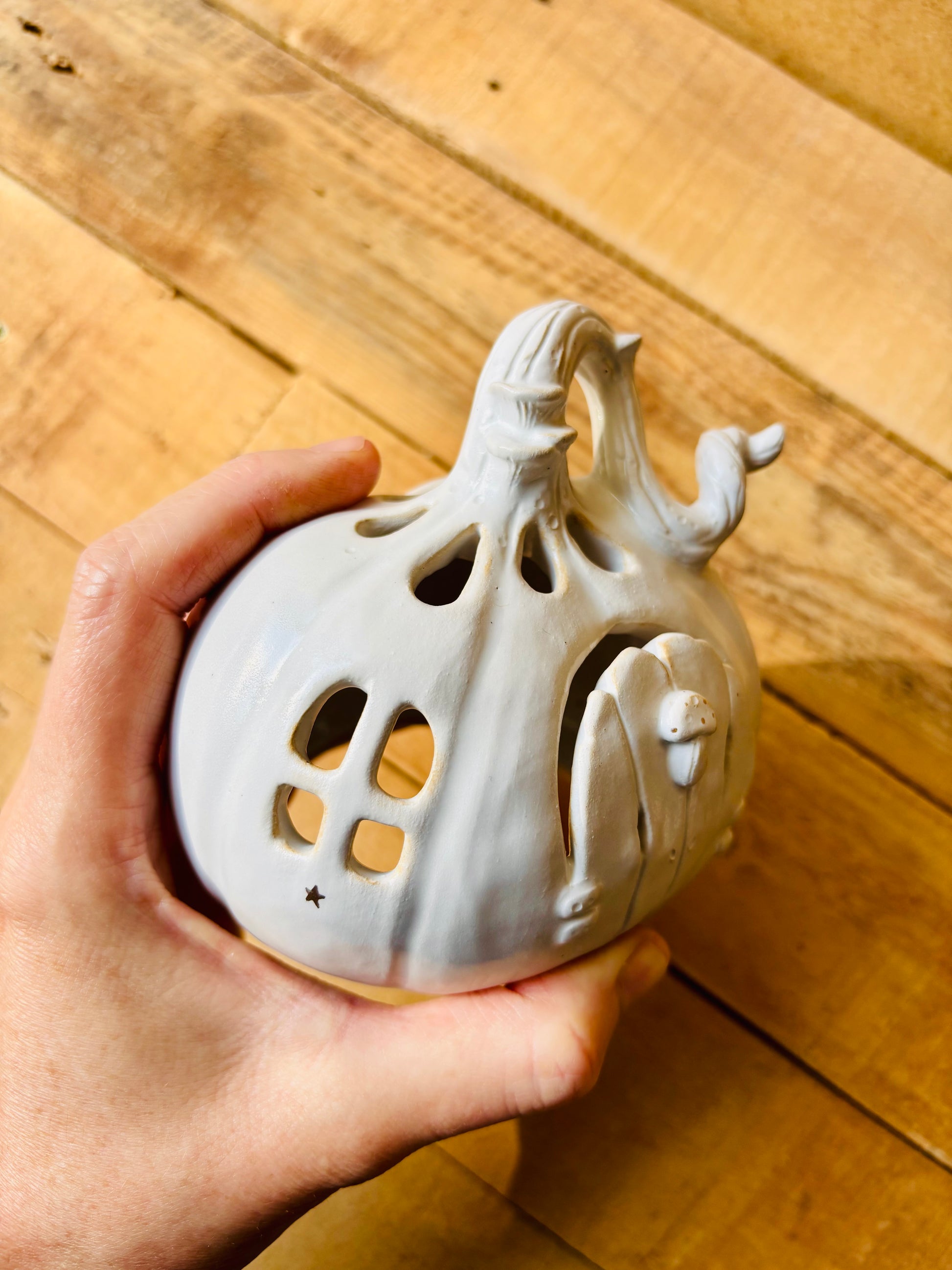 Karine - Etsy - 10/31/22 - I had the chance to adopt the "claude" pumpkin, it is magnificent. My son is super happy. Very well packaged, a little note and ceramic label, superb attention, Thank you!!!. Looking forward to expanding the family with Hector's order.