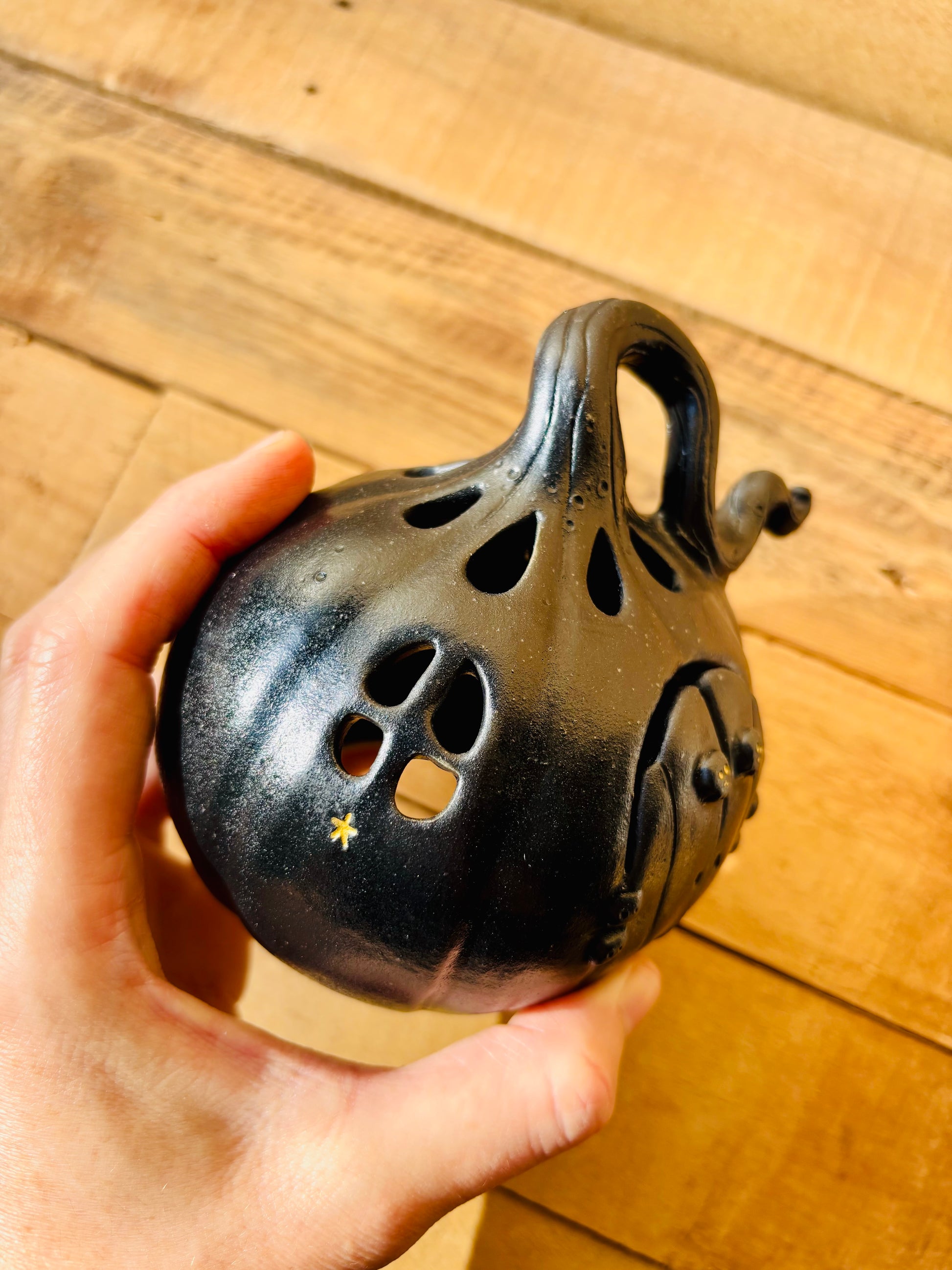 Karine - Etsy - 10/31/22 - I had the chance to adopt the "claude" pumpkin, it is magnificent. My son is super happy. Very well packaged, a little note and ceramic label, superb attention, Thank you!!!. Looking forward to expanding the family with Hector's order.