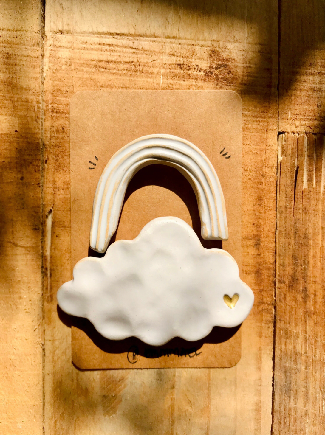 Arc-en-ciel et nuage à poser sur votre frigo ou toute autre surface métallique.