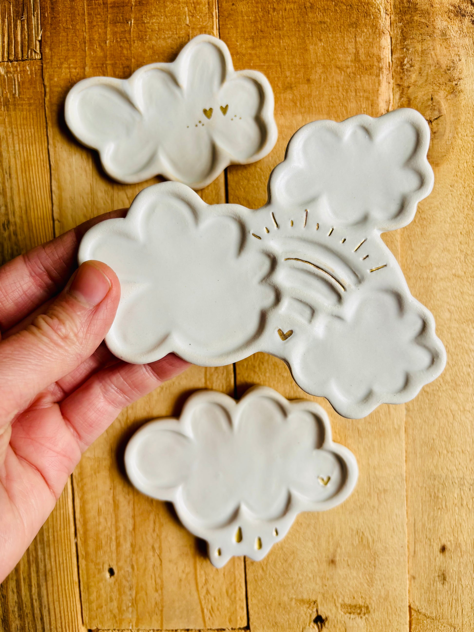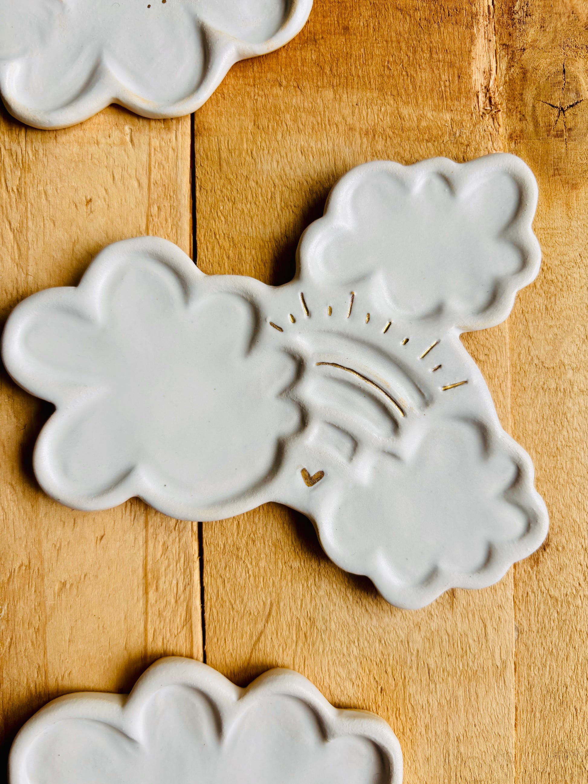Nuages et arc-en-ciel palette aquarelle blanche et or - 1