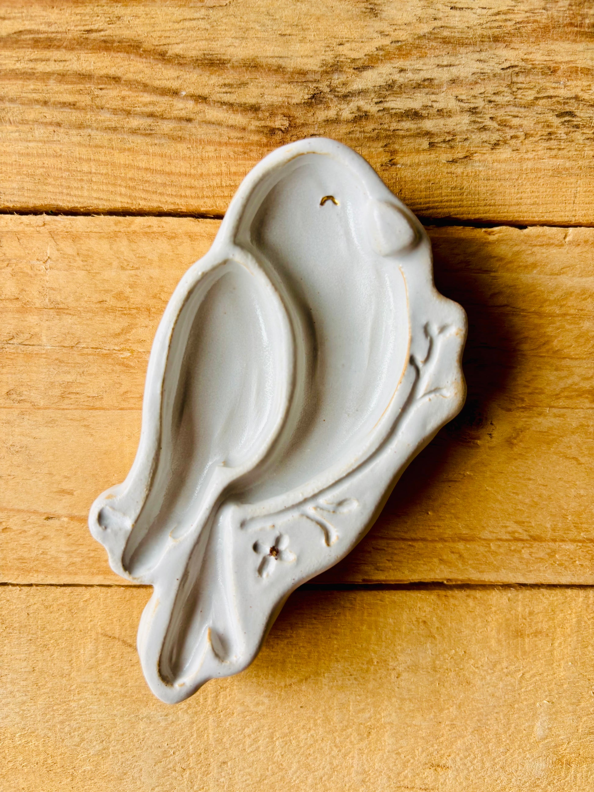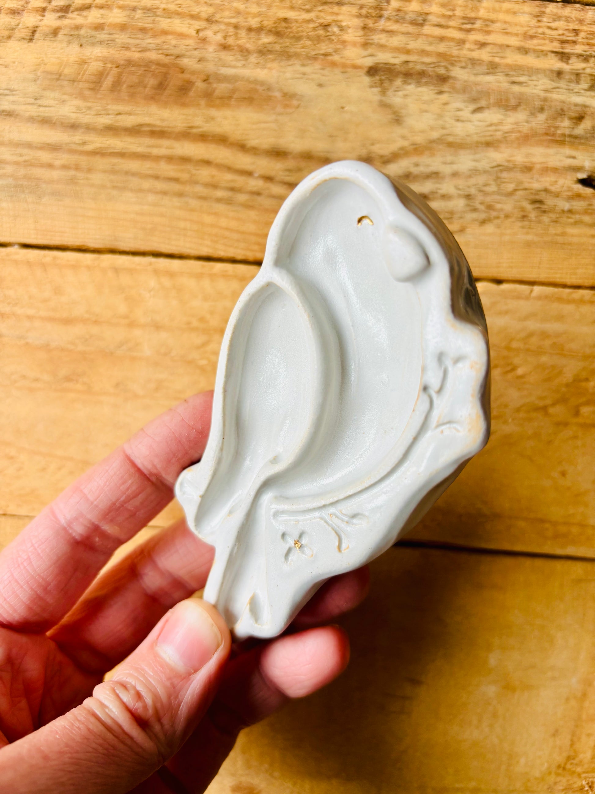 Oiseau modelé en grès blanc et recouvert d'un email blanc satiné.