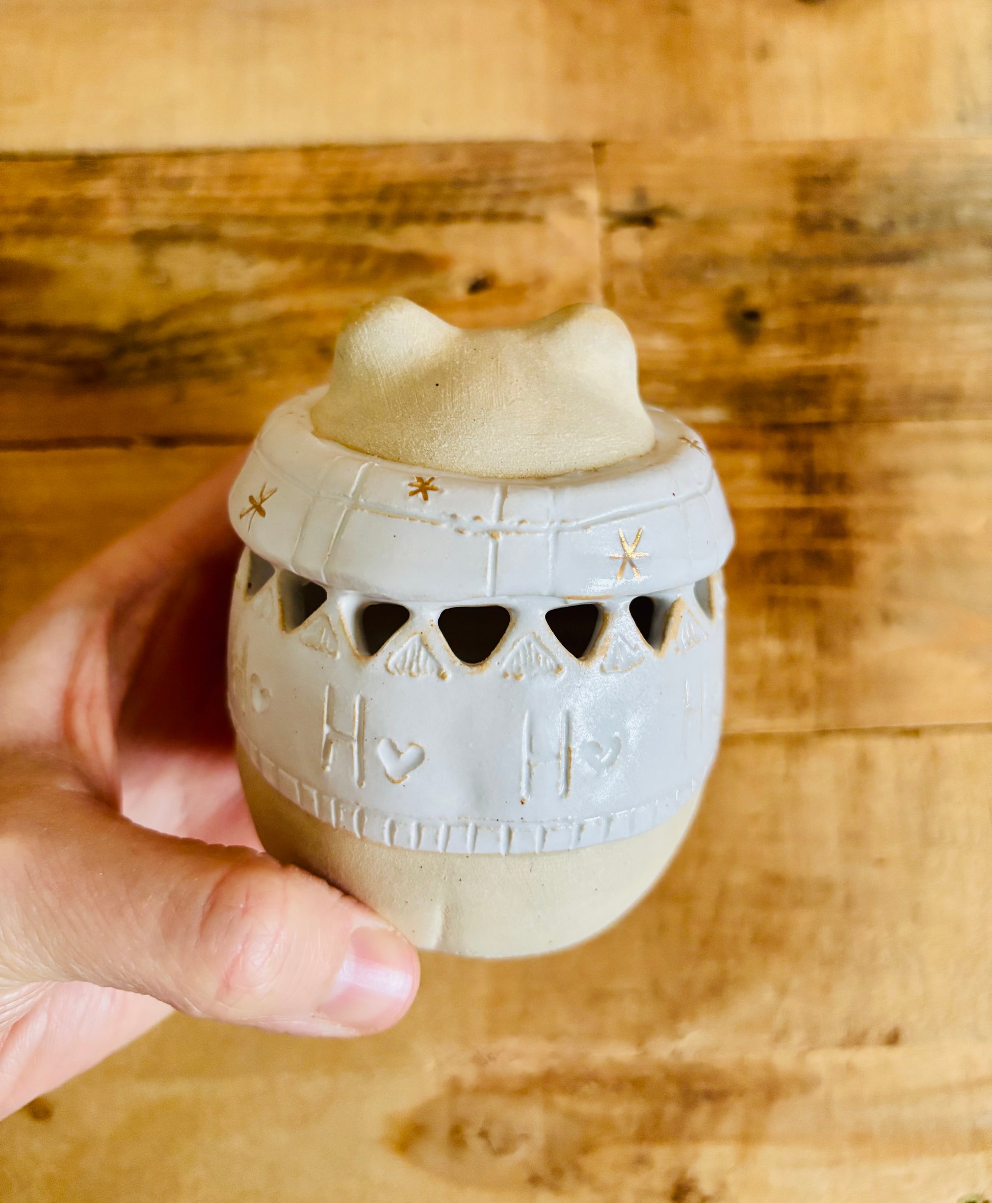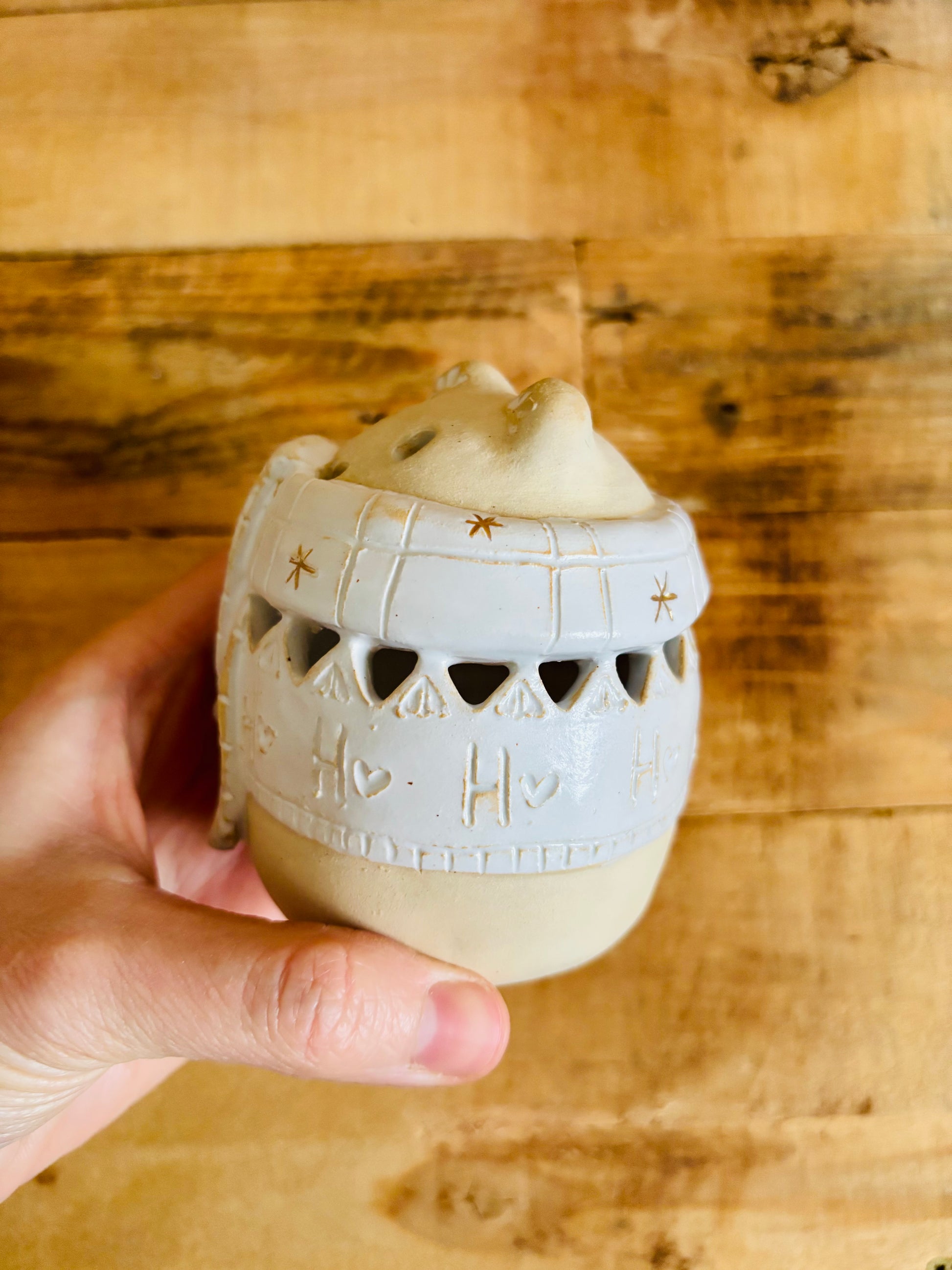 Karine - Etsy - 11/19/22 - Another pleasure to receive a pretty package, I couldn't see the pumpkin inside because it was a Christmas present. Very well packaged, little attention with a little ceramic word and name. I'm now waiting to discover it... Looking forward to soon receiving the Hector pumpkin which is also my Christmas present.