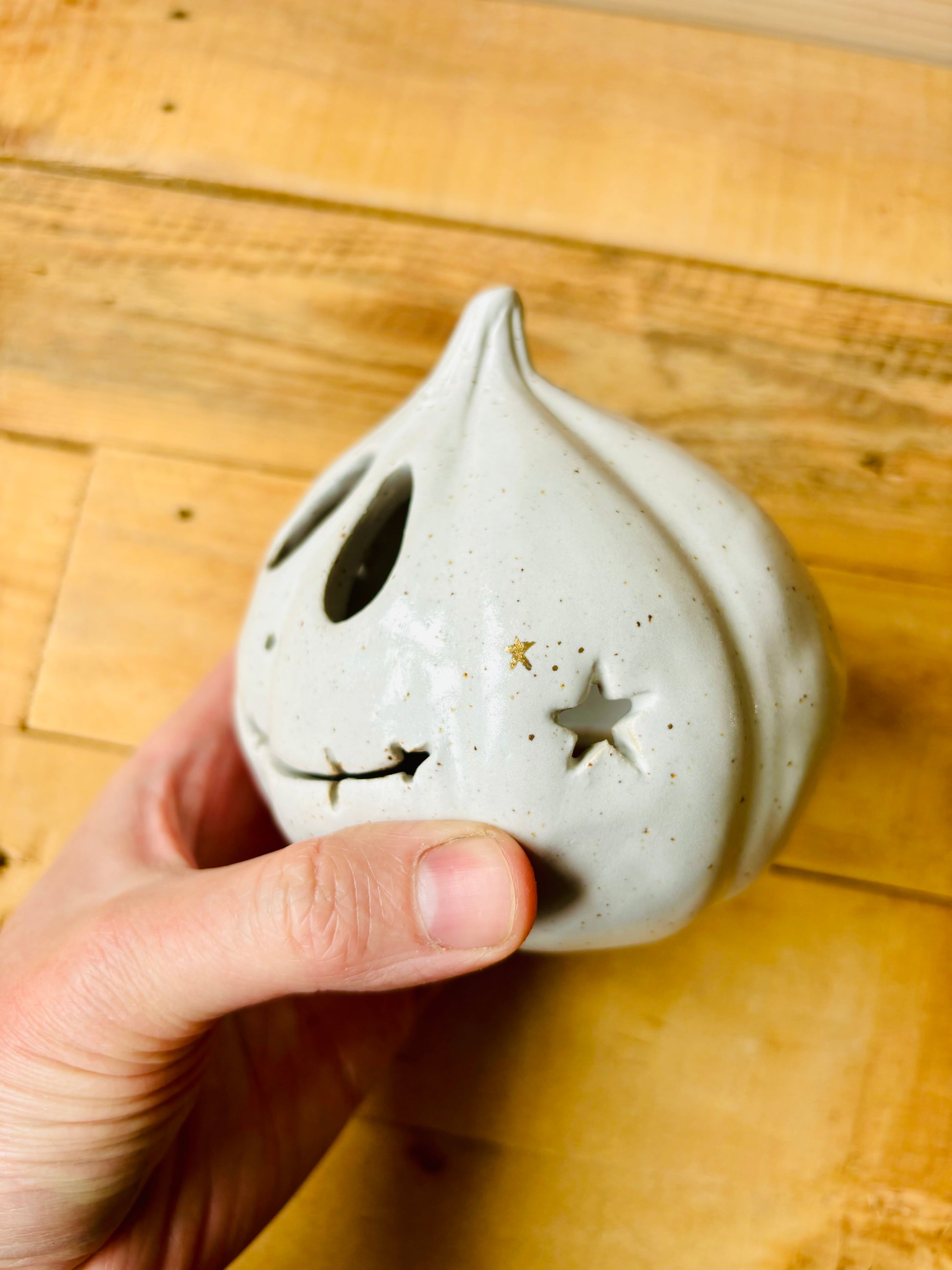 Karine - Etsy - 10/31/22 - I had the chance to adopt the "claude" pumpkin, it is magnificent. My son is super happy. Very well packaged, a little note and ceramic label, superb attention, Thank you!!!. Looking forward to expanding the family with Hector's order.
