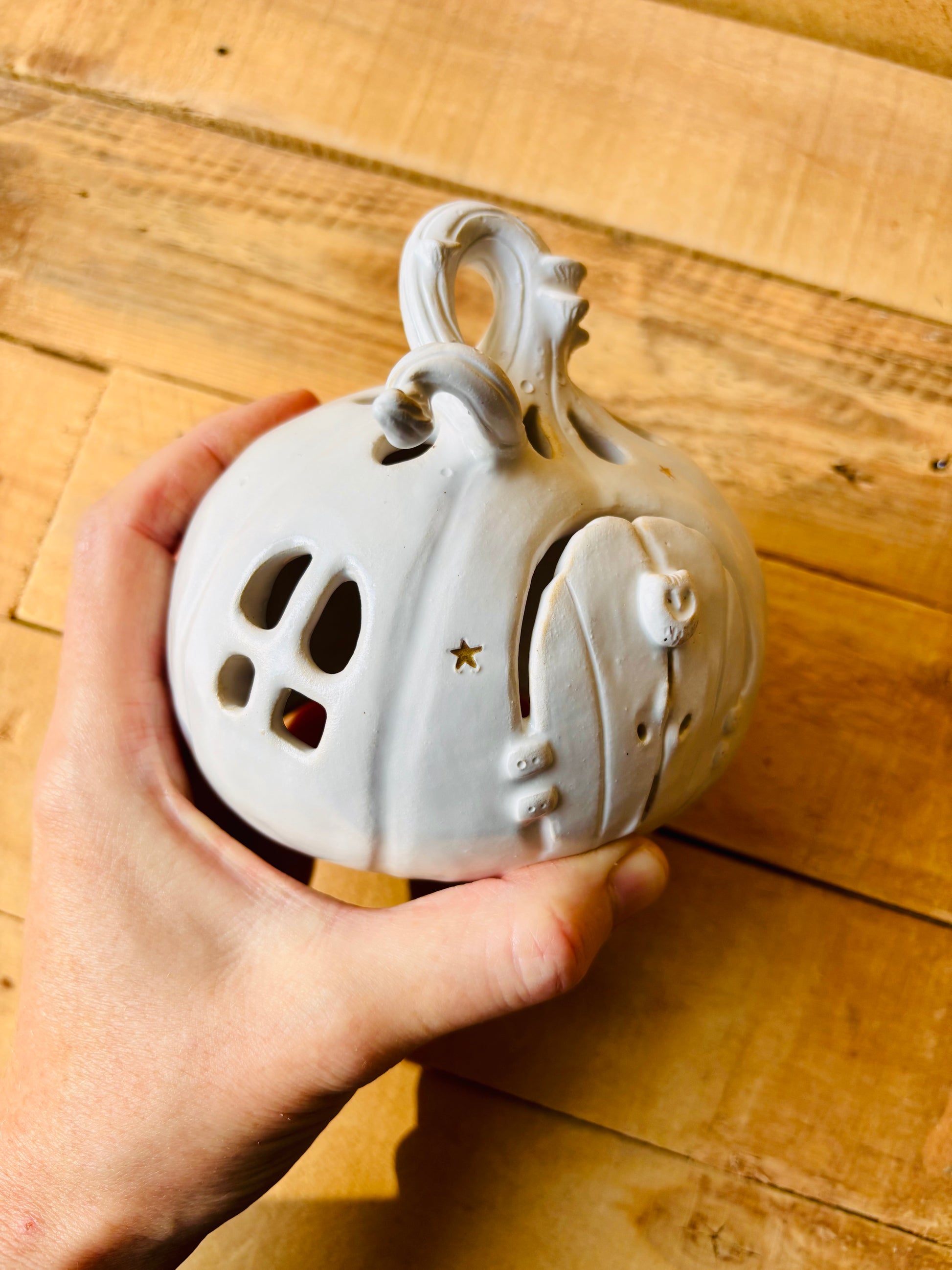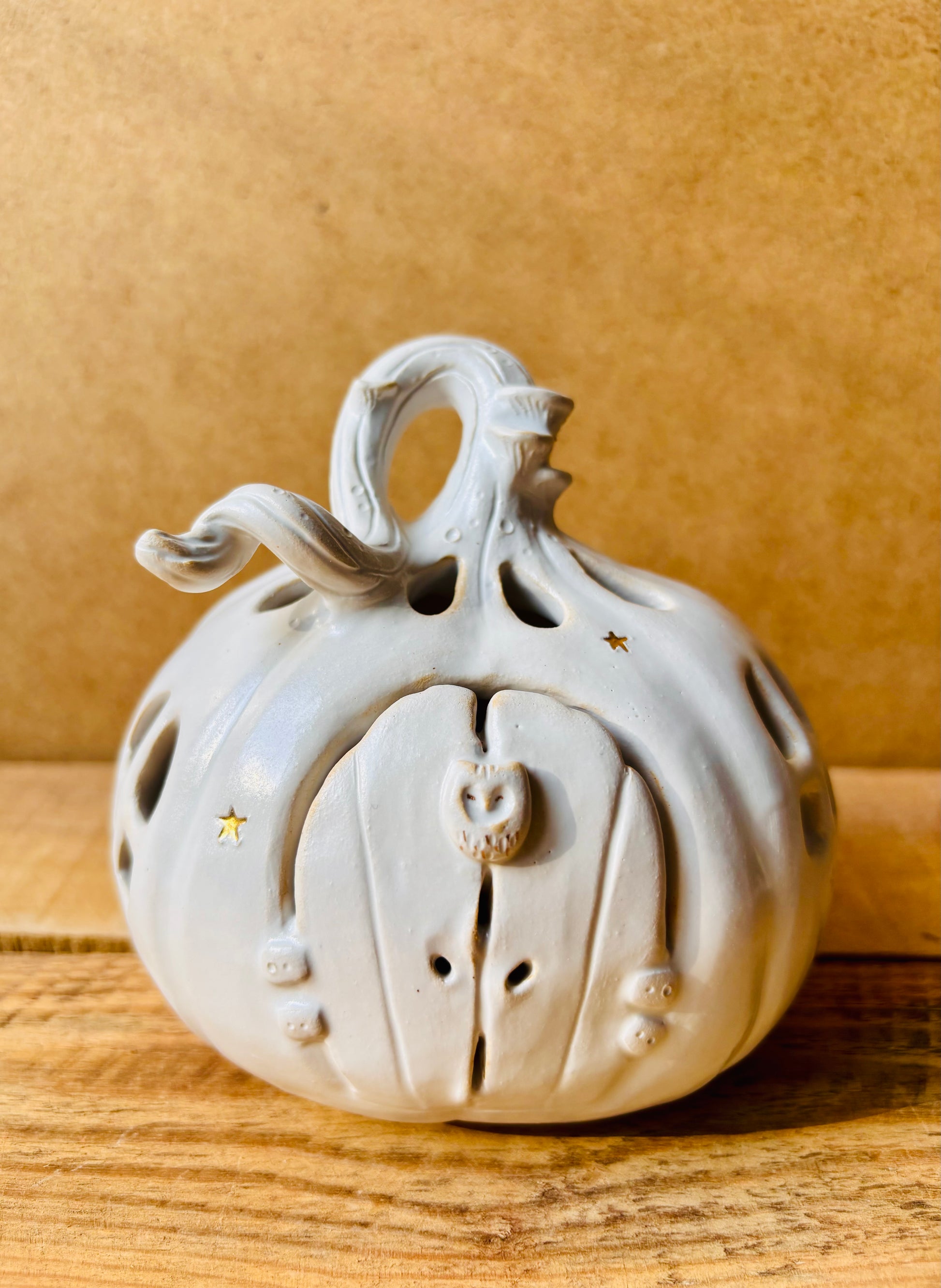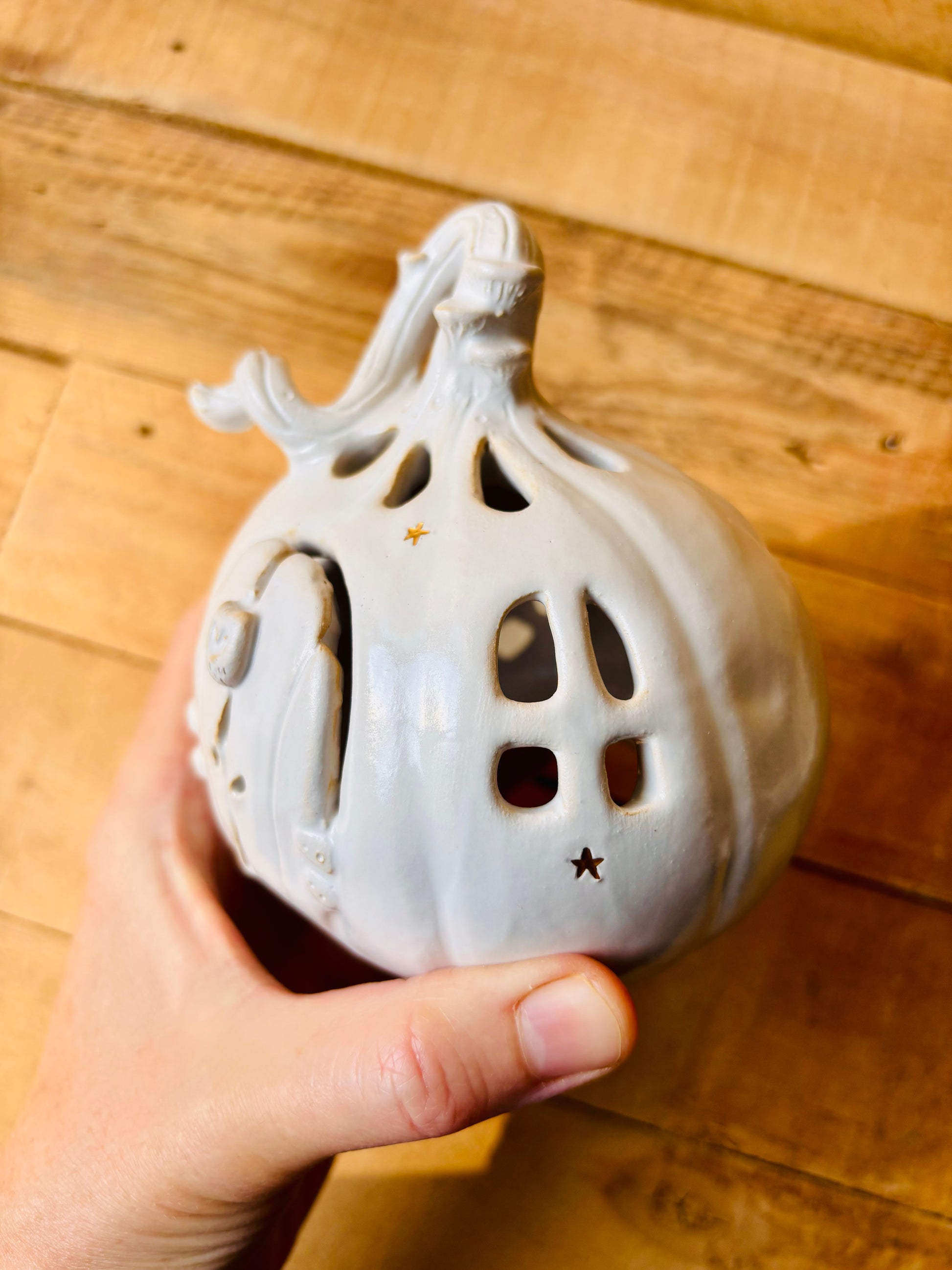 PRECOMMANDE - Maison citrouille - photophore blanc et or