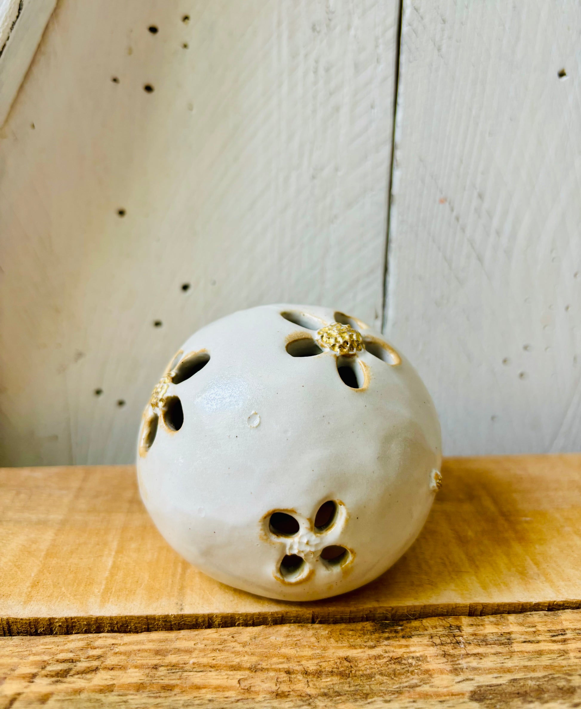 Soliflore modeled in white sandstone and covered with satin white glaze. Several flower have been painted with gold.
