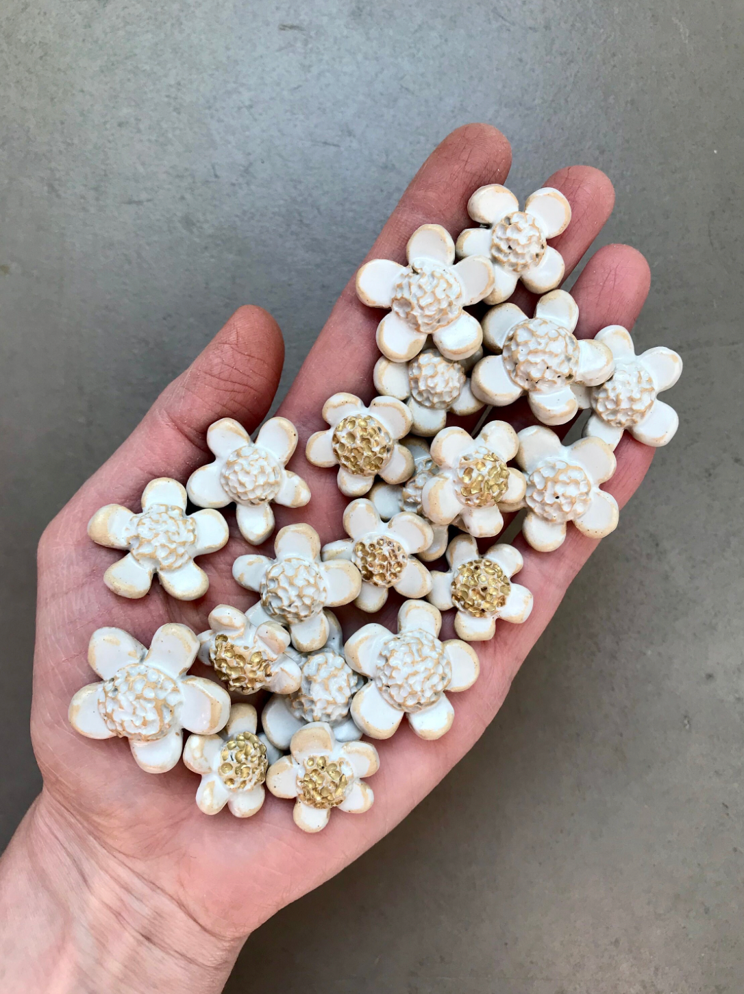 Ces pièces ont été réalisées en grès et recouverts d'un émail blanc satiné.