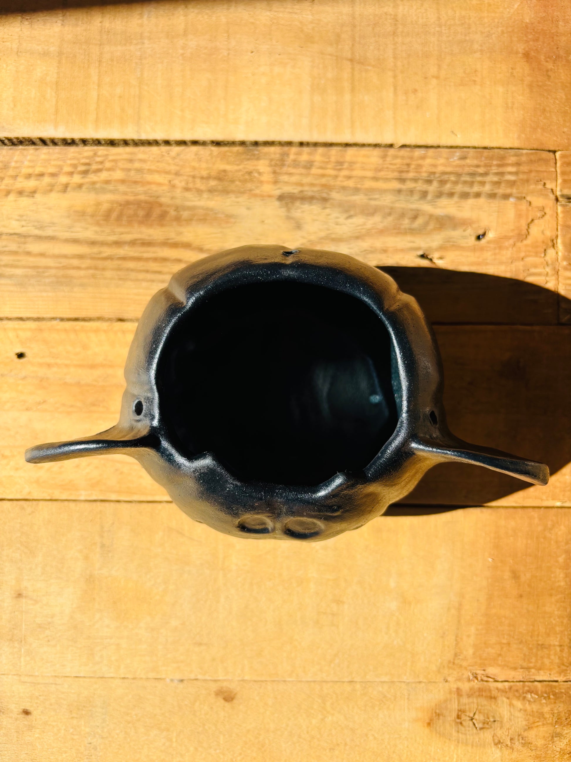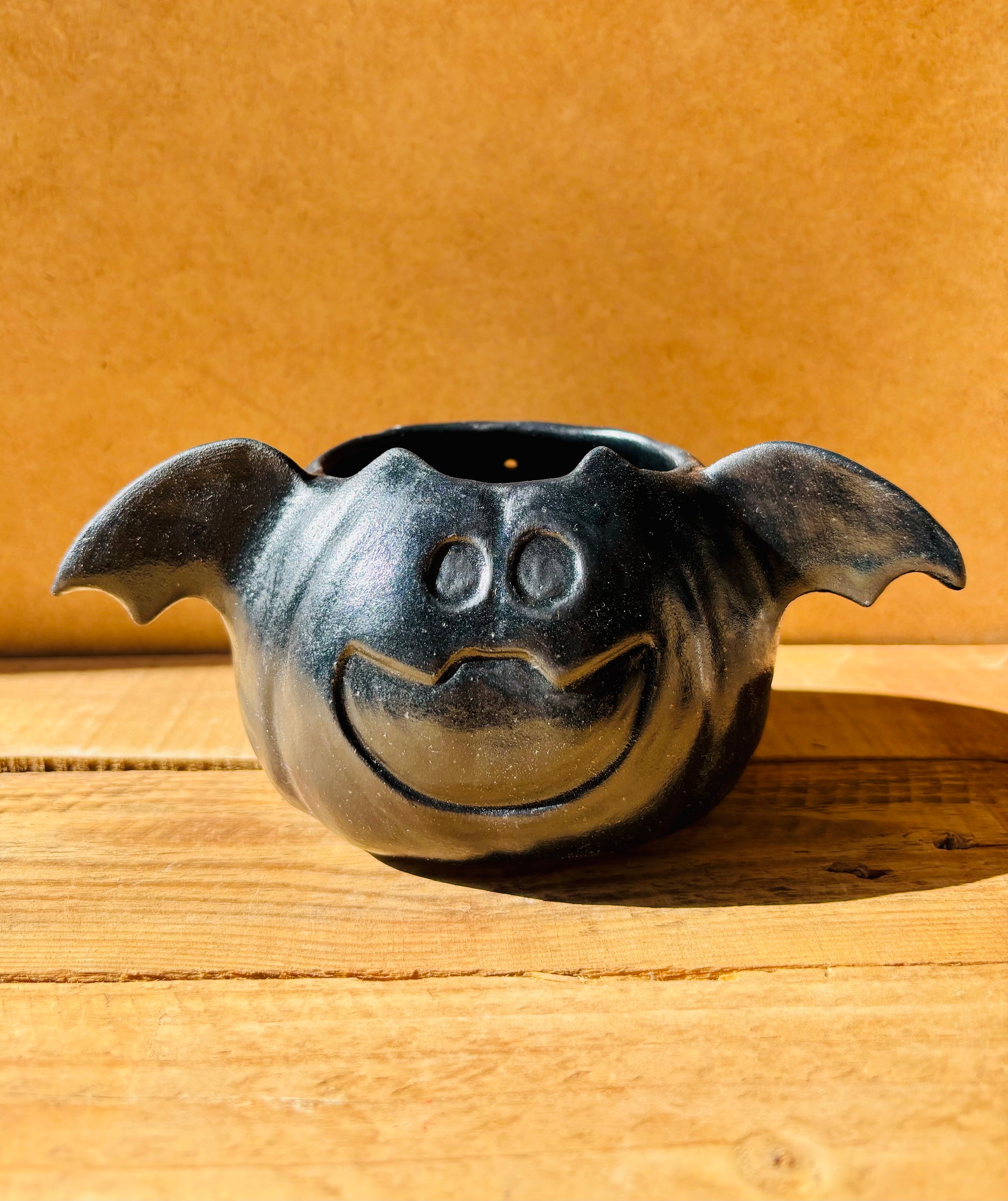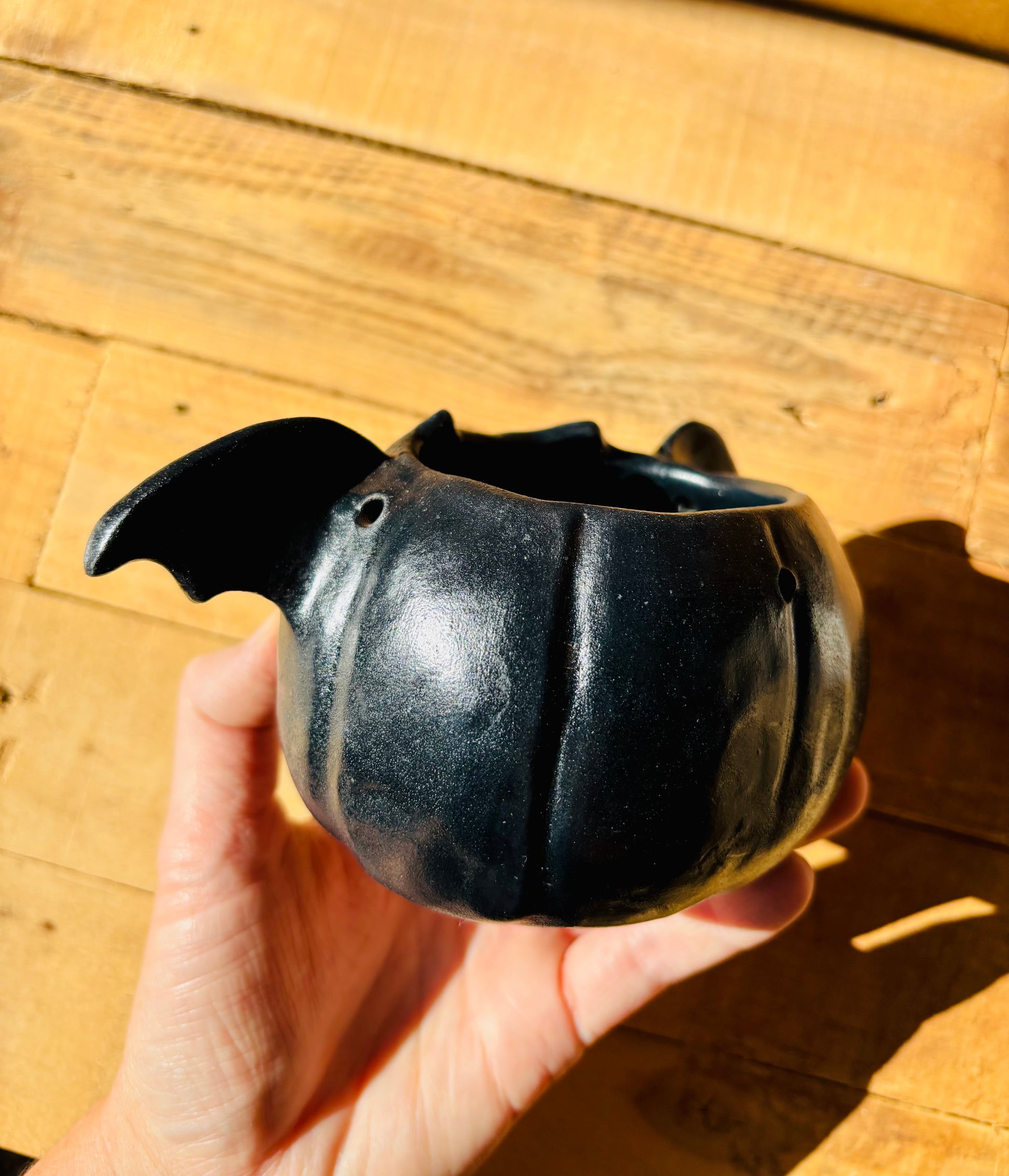 Chauve-souris modelée en grès pyrité et recouvert d'un email noir satiné.