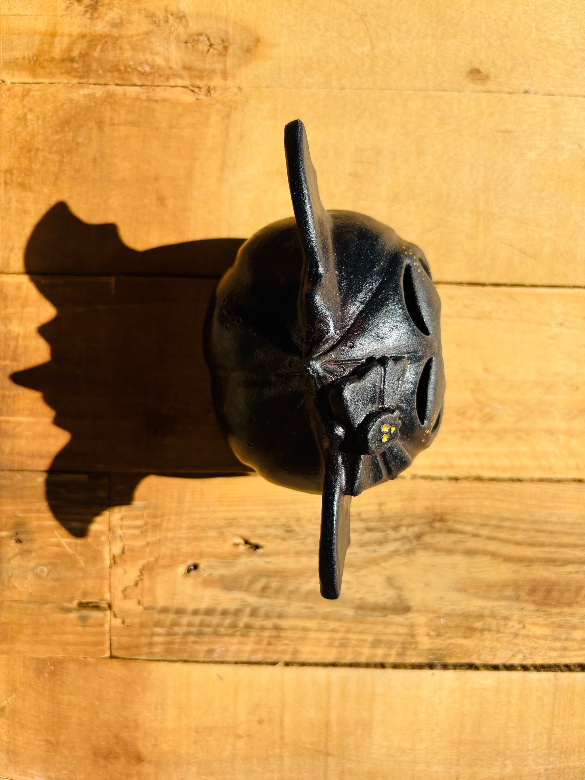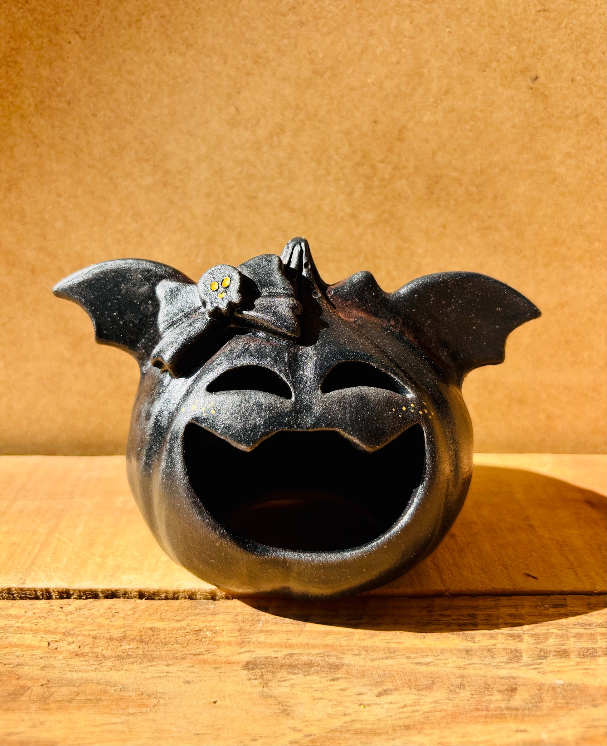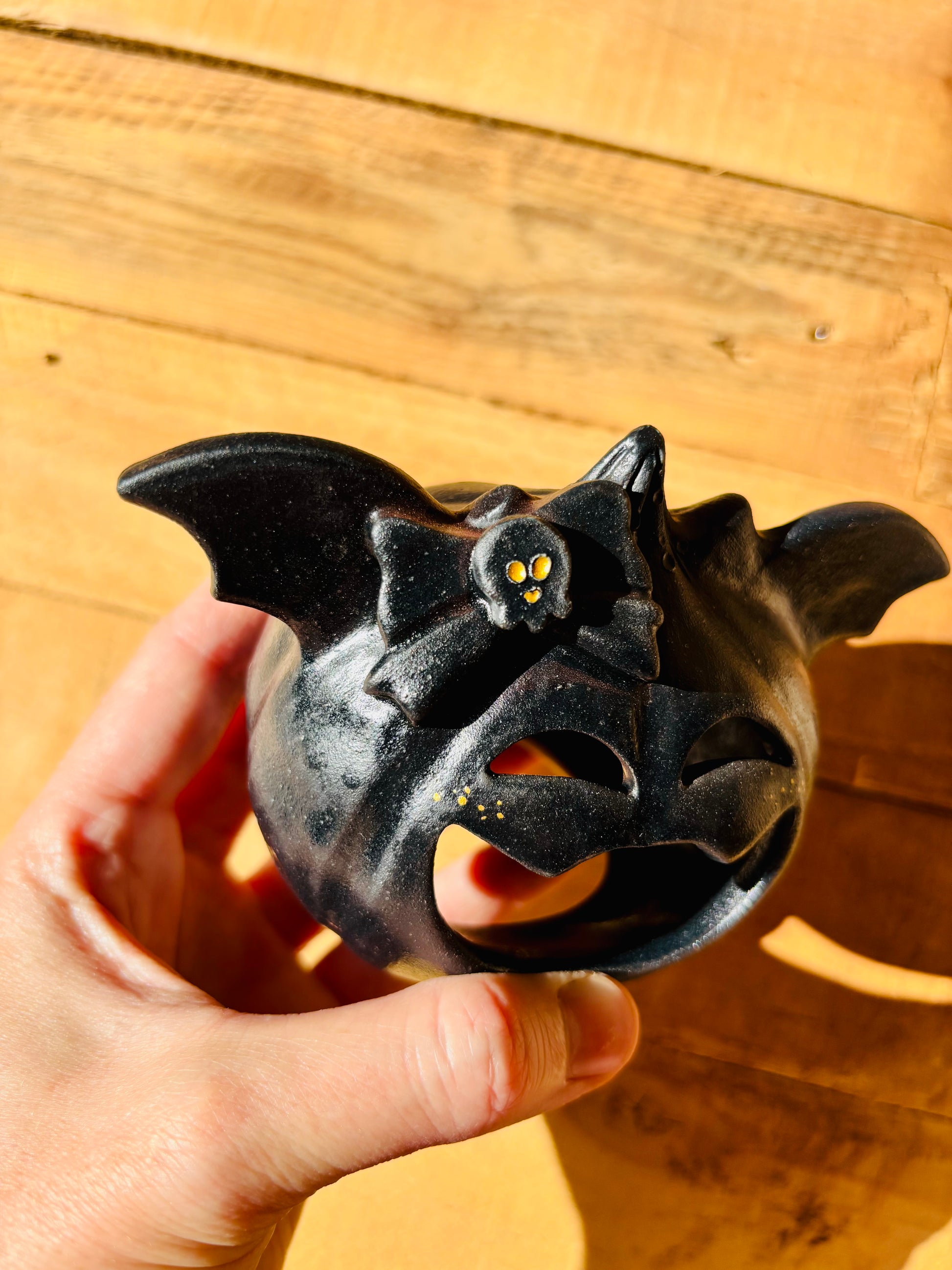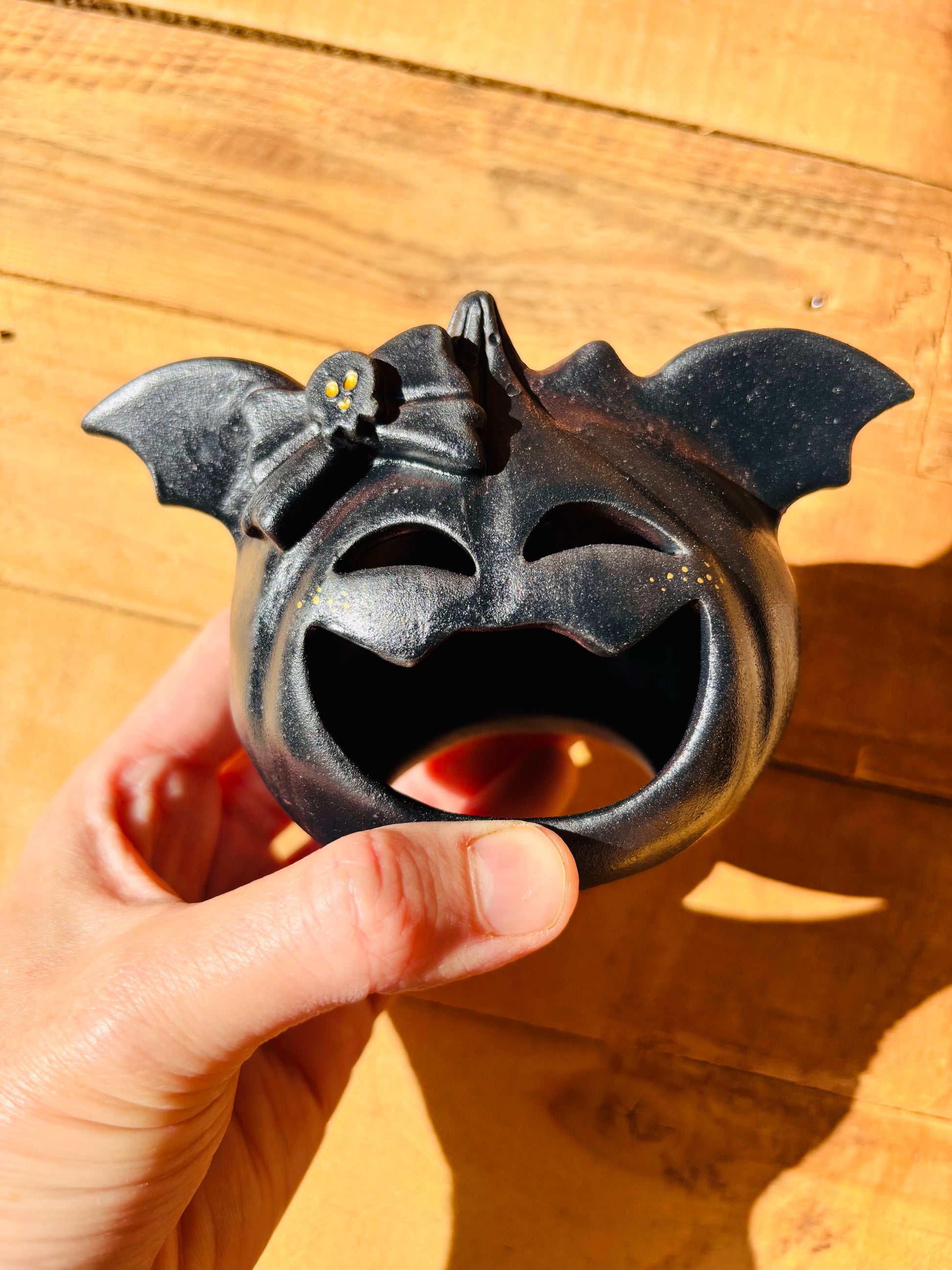 Chauve-souris modelée en grès pyrité et recouvert d'un email noir satiné.