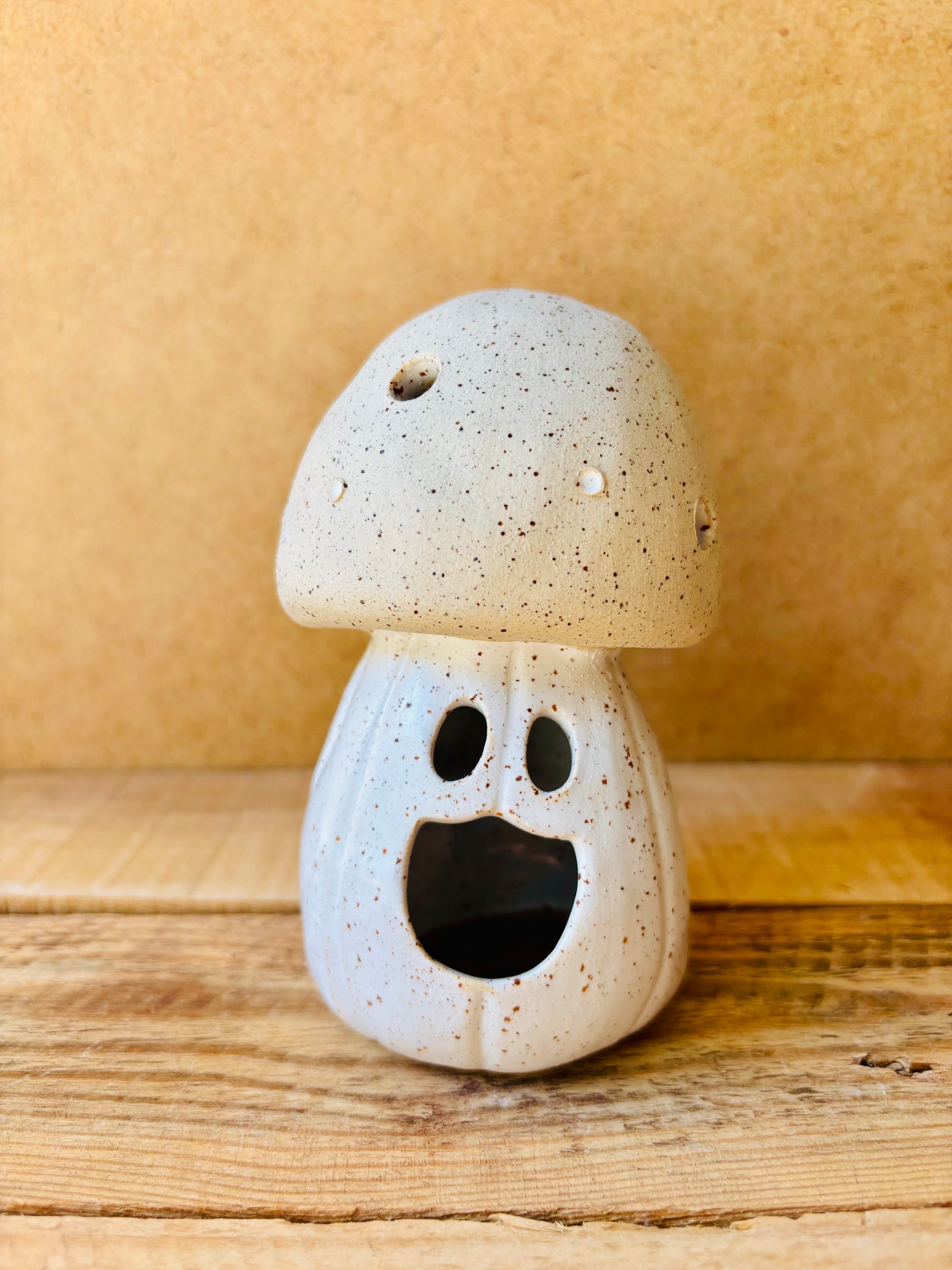 Champignon photophore en céramique.