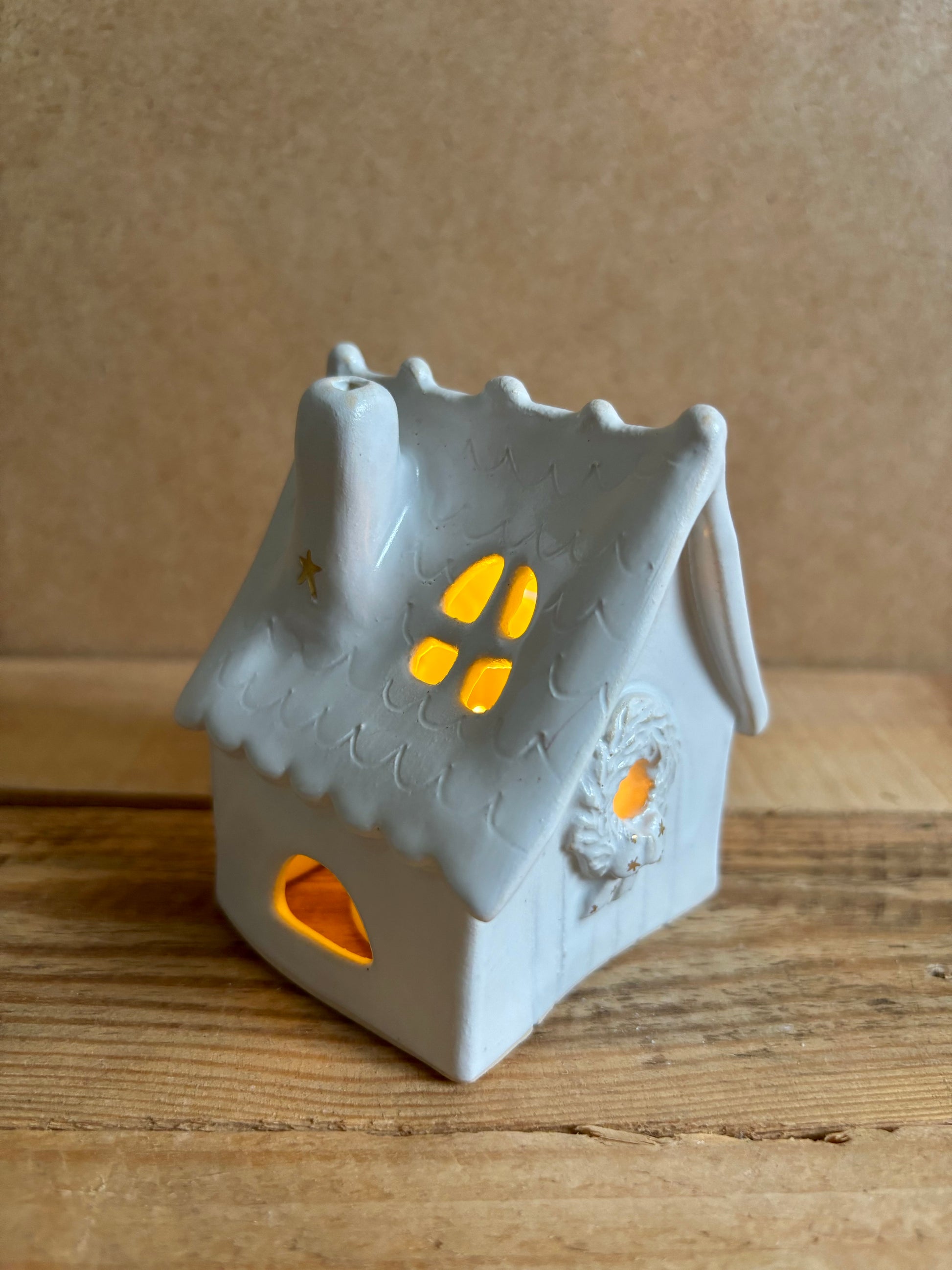 Cette maison s’accompagne d’une bougie chauffe-plat à led avec flamme vacillante (pile incluse).
