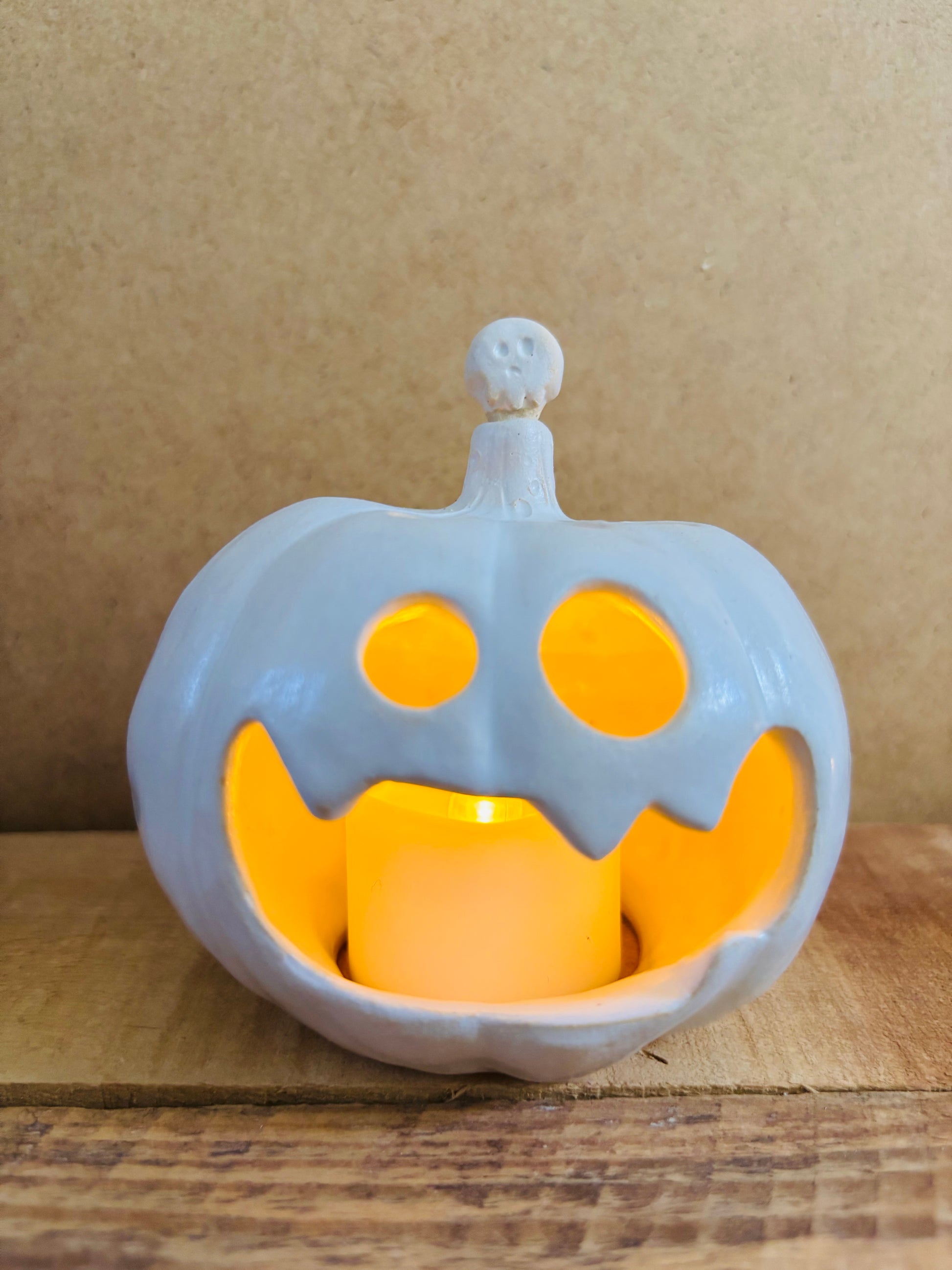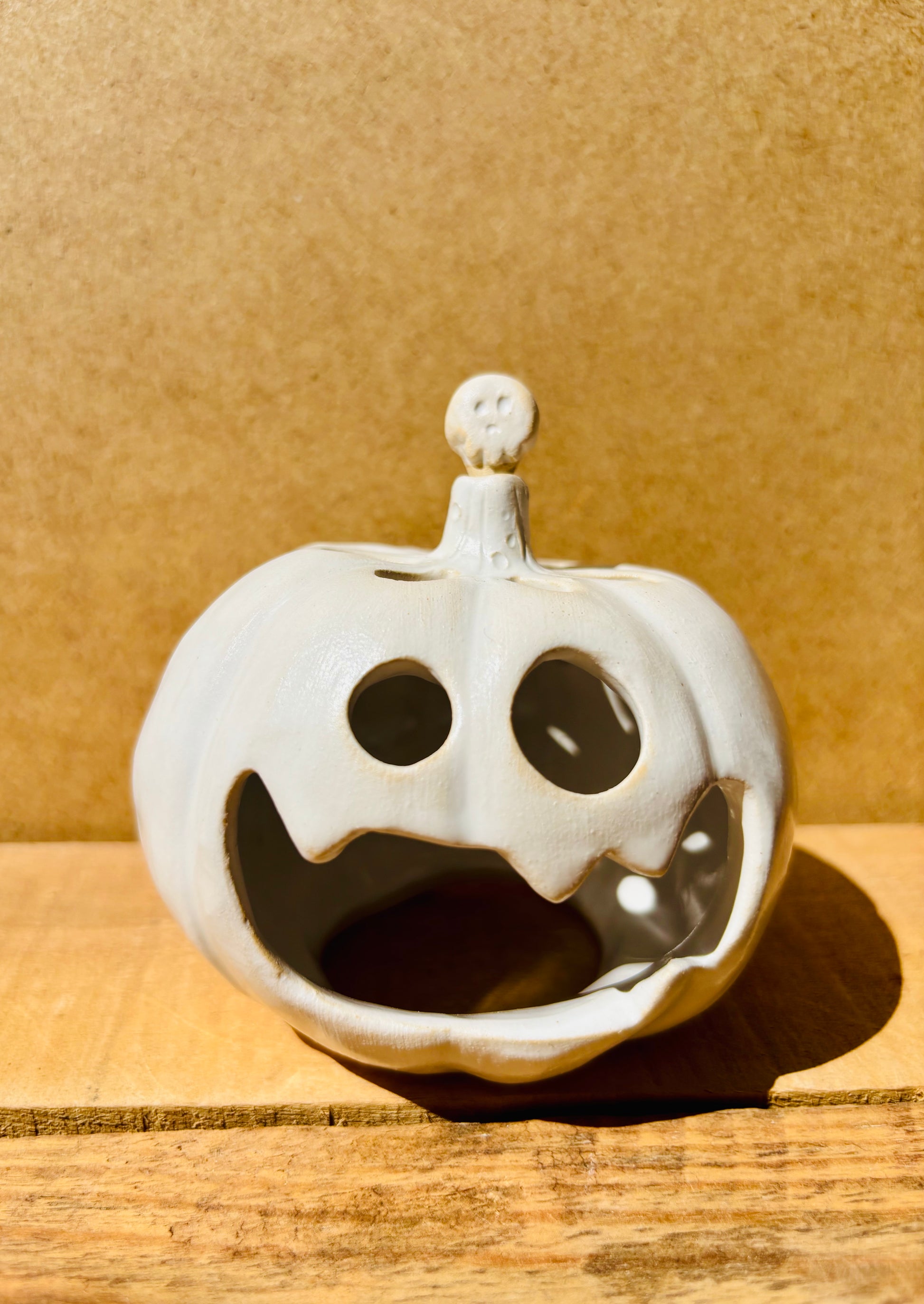 Citrouille photophore en céramique à décorer d'une jolie couronne de fleurs (fleurs non fournies).