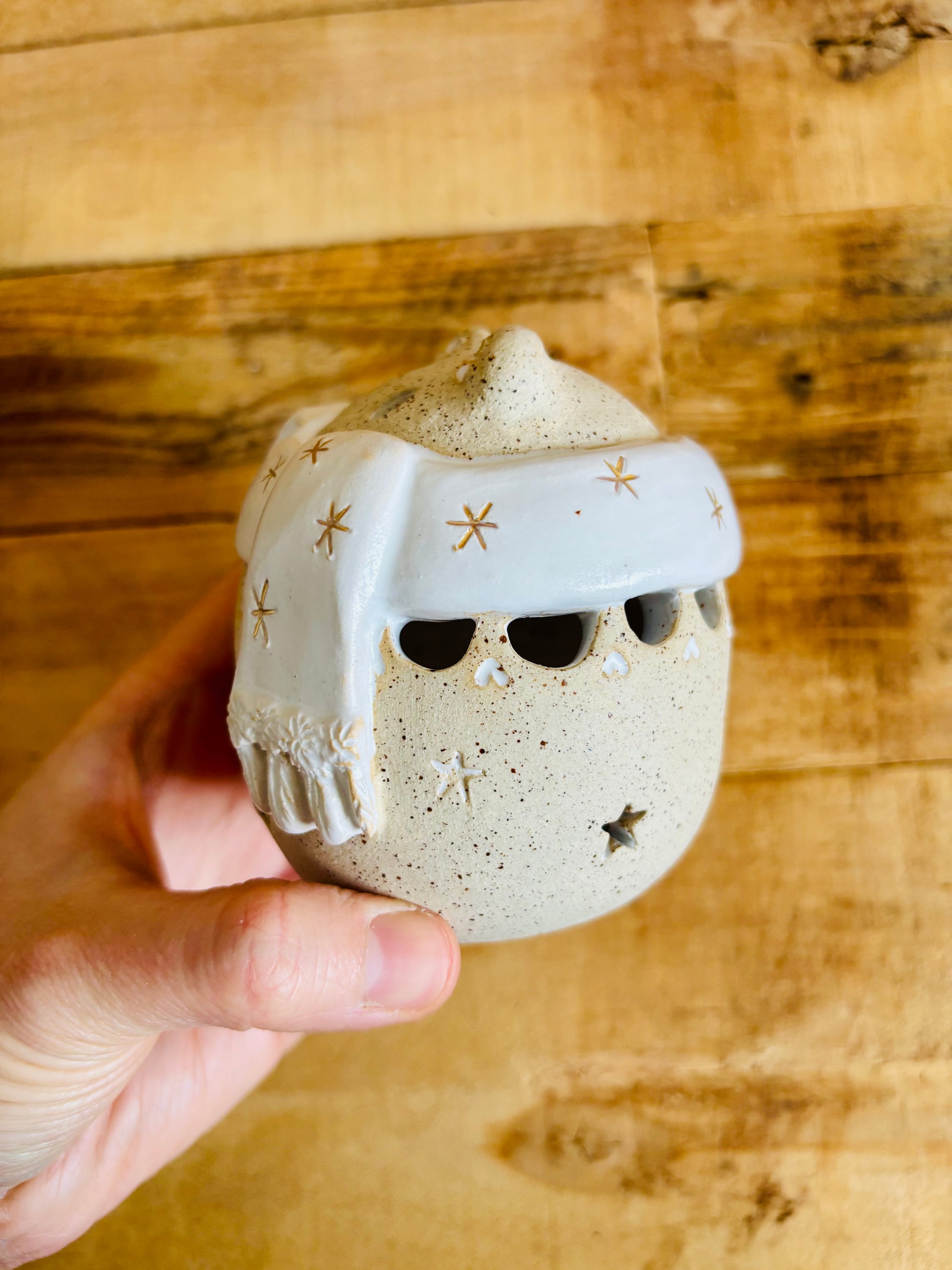 Nissanels - Etsy - 06/12/22 - Patrick a rejoint son ami la citrouille de Noël, les détails et les finitions sont incroyables. Magnifique soin apporté au packaging, je recommande les yeux fermés. Emma a fait des merveille pour cette petite citrouille sur mesure. Je suis tellement heureuse de ma petite céramique, elle est parfaite et unique en son genre. C'est ma première mais sûrement pas ma dernière commande. Tout me plait dans cette boutique. Merci Emma